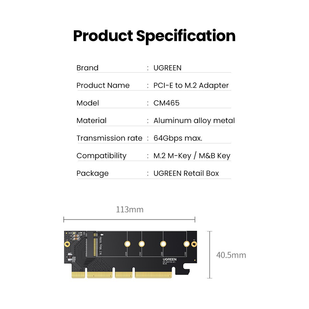 UGREEN(30715)PCI-E 4.0(16x) to M.2 NVME Express Adapter with Heat Dissipation Silicone, 64 Gbps