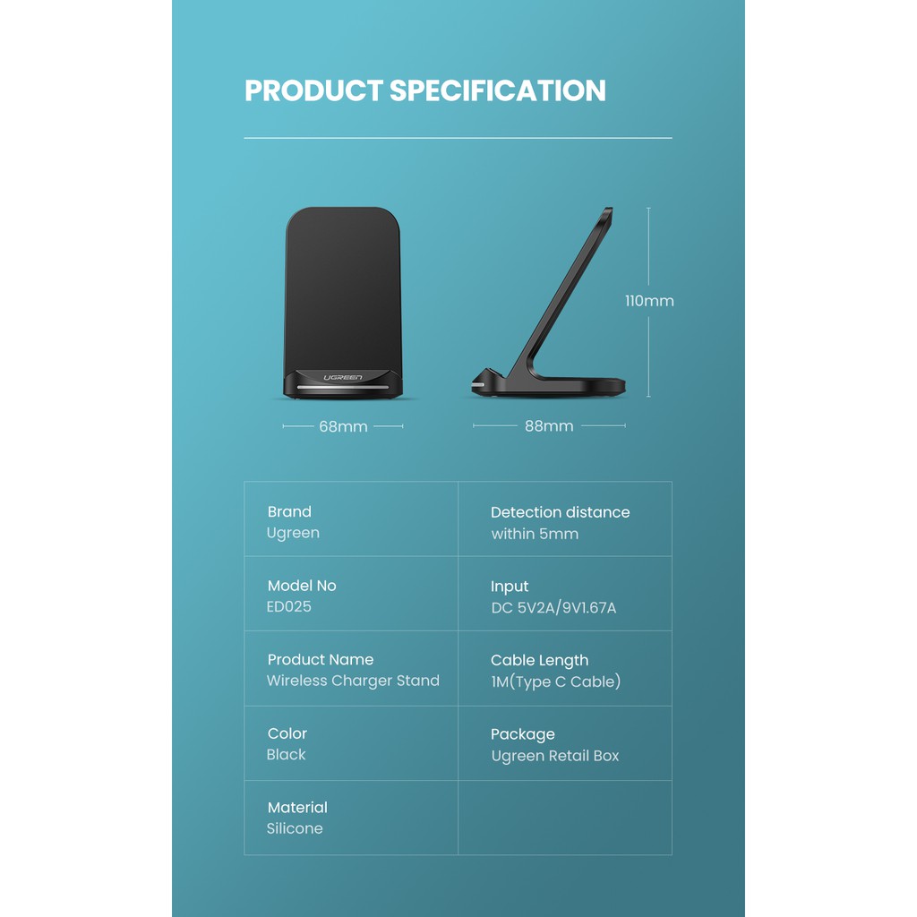 UGREEN รุ่น 60228 แท่นชาร์จโทรศัพท์มือถือไวเลส Desktop Wireless Charger 10W (Black