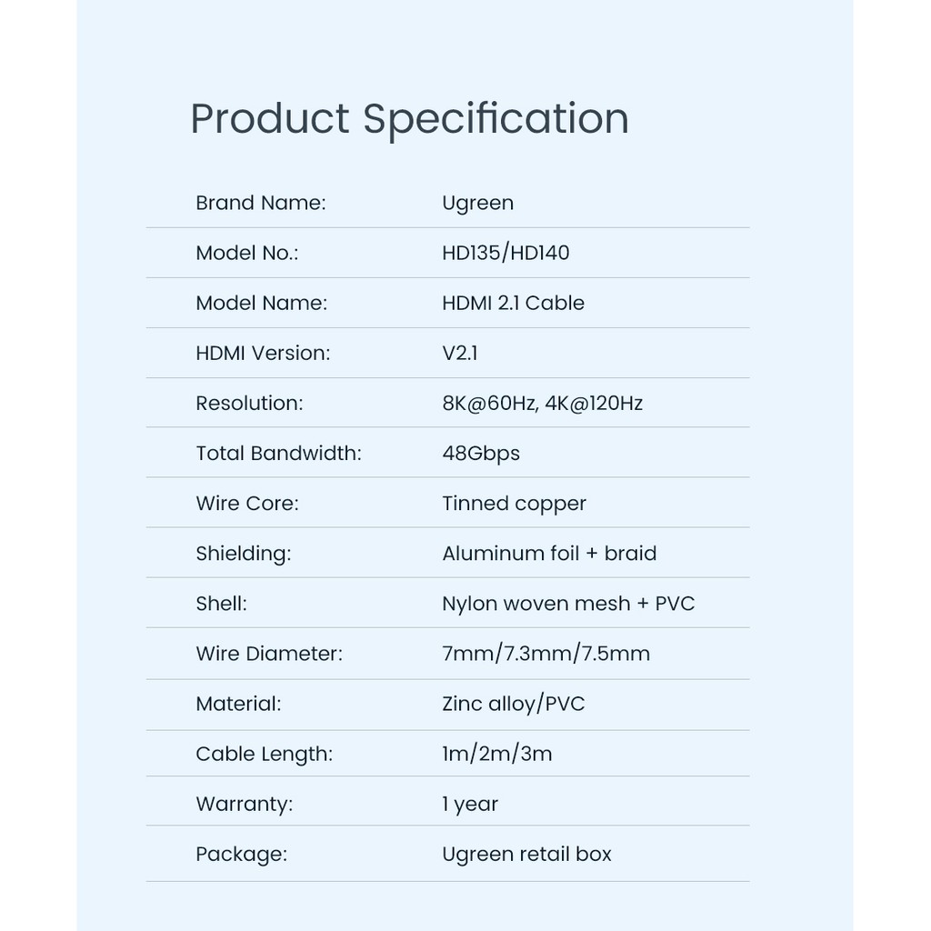 UGREEN สายแปลงสัญญาณ hdmi 2.1 8k/ 60hz 4k/120hz 48gbps hdcp 2.2 สําหรับ ps4