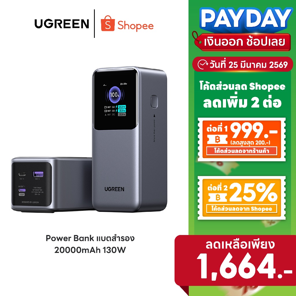 UGREEN Power Bank แบตสำรอง 20000mAh 2C1A 130W Super Fast Charging สําหรับ Macbook/IPhone รุ่น 35524B