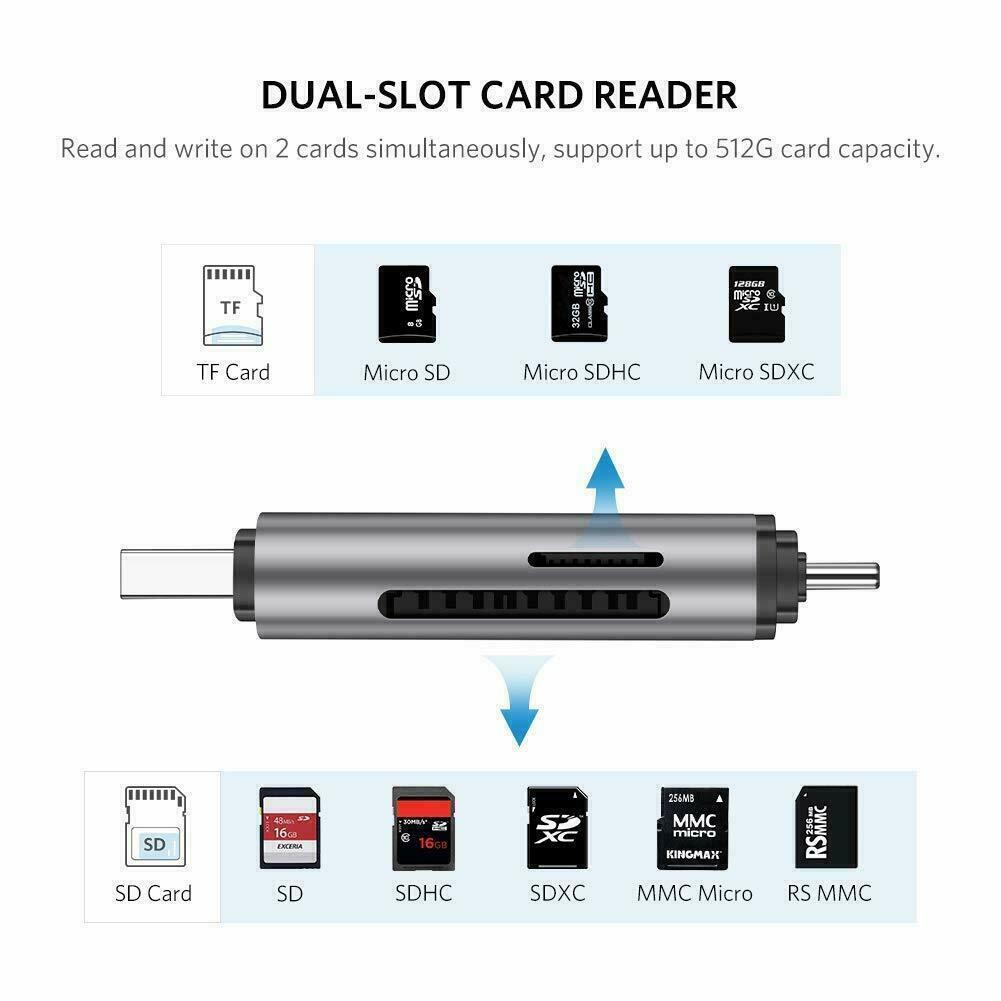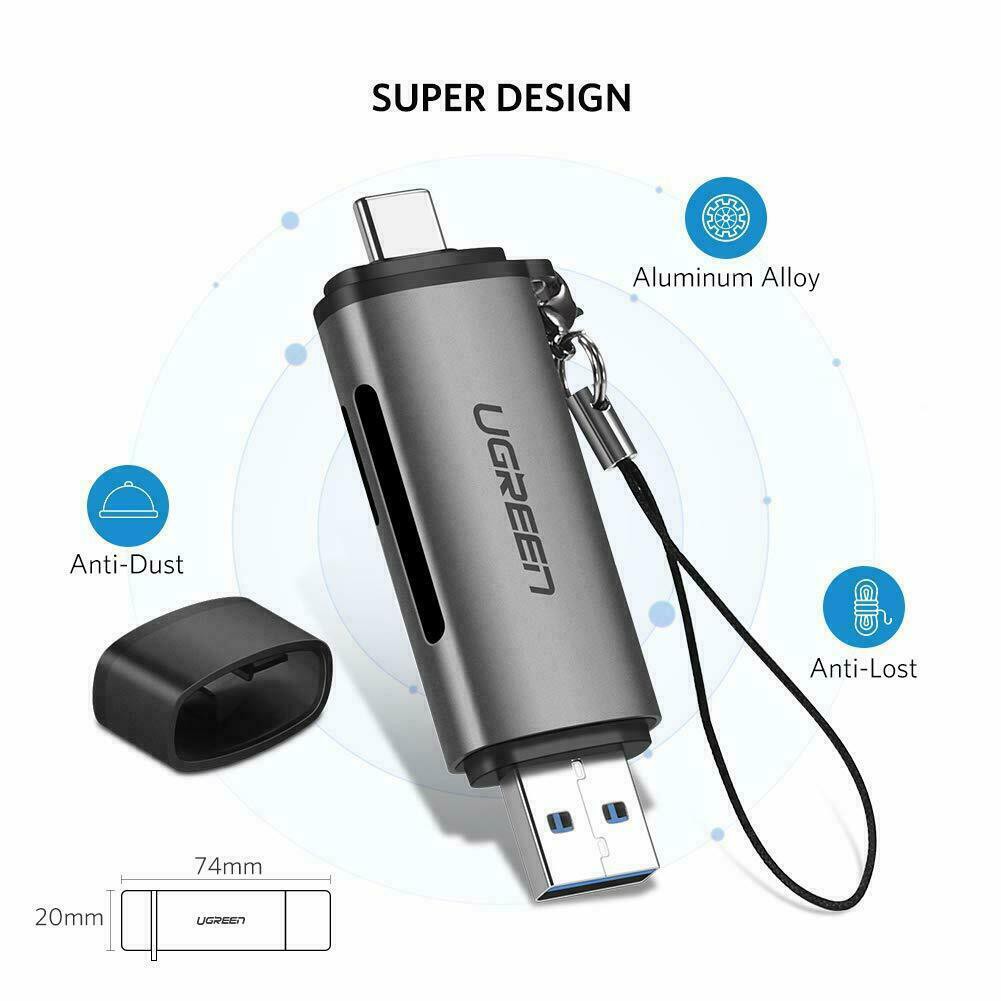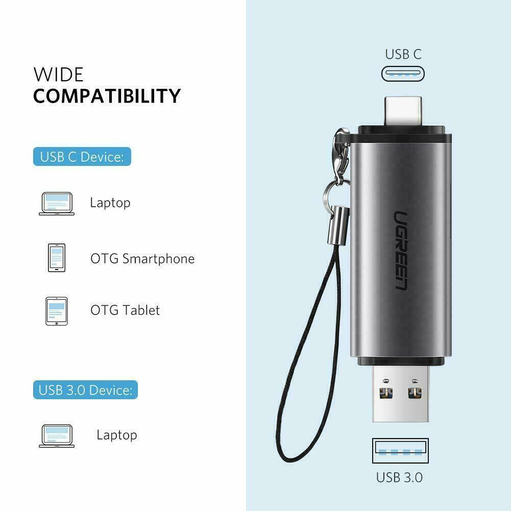 UGREEN (50706,80191)SD Card Reader USB Type C USB 3.0 OTG Memory Card Adapter Portable 2 Slots