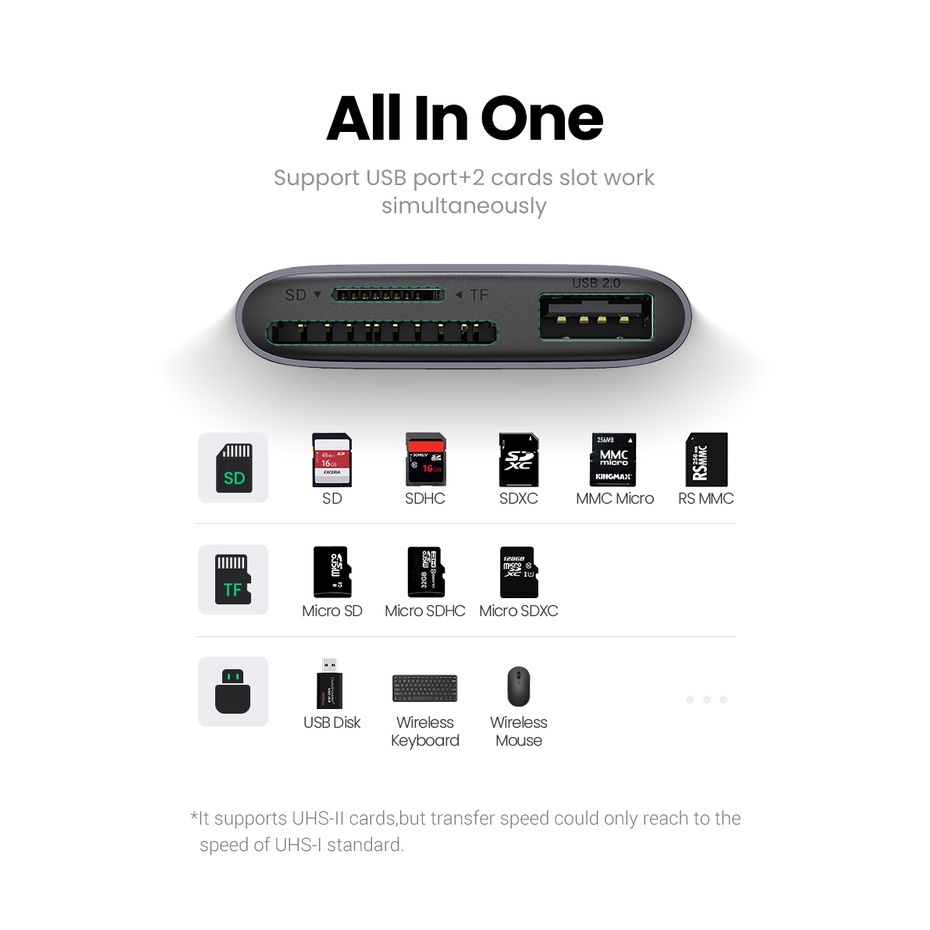 UGREEN-80798 Card Reader 3 in 1 Adapter USB C to Micro SD Memory Card Reader for TF SD SDX