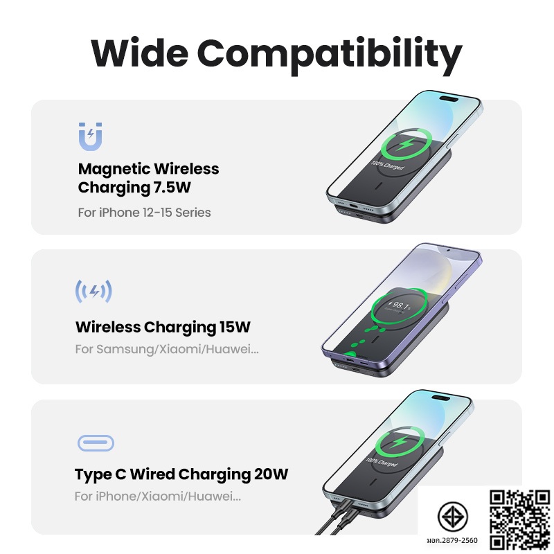 【รับสายชาร์จฟรี】UGREEN 10000mAh พาวเวอร์แบงค์แบบแม่เหล็ก Magnetic Wireless Mini Powerbank PD20W Charger USB C สําหรับ iPhone 16 Pro Max 15/15 Pro Max iPhone 17