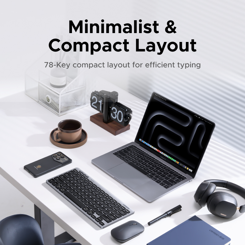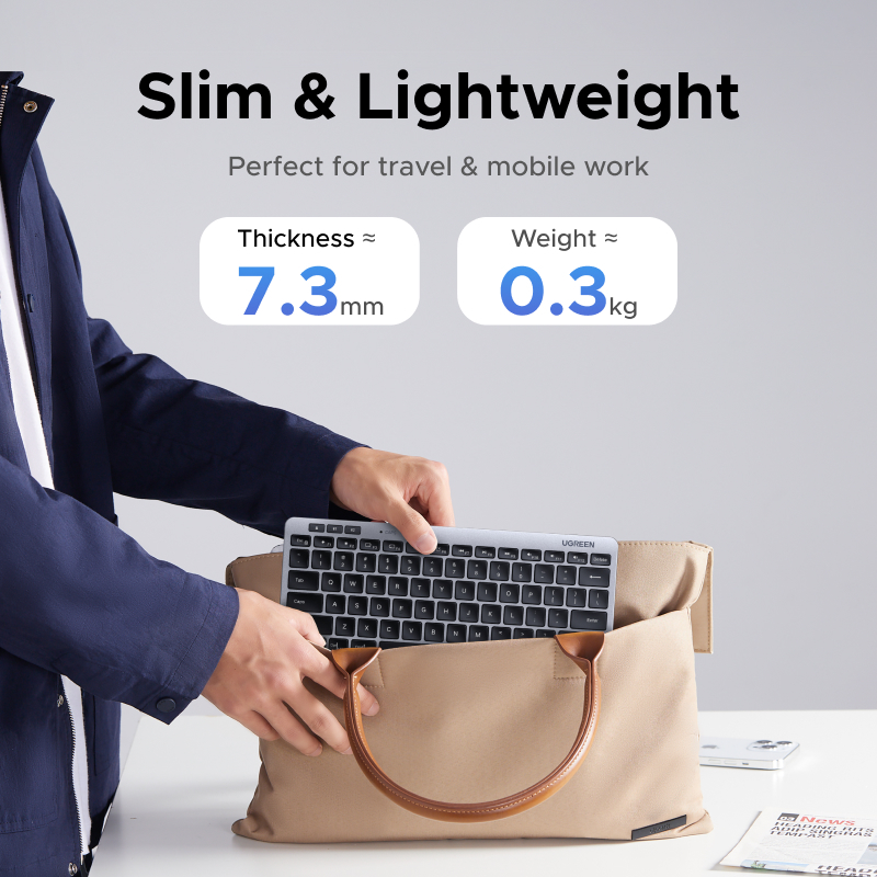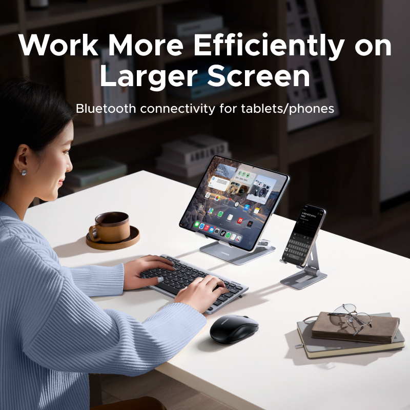 UGREEN Slim Portable Black Wireless Keyboard Bluetooth 5.3 + 2.4G Silent Click Keyboard