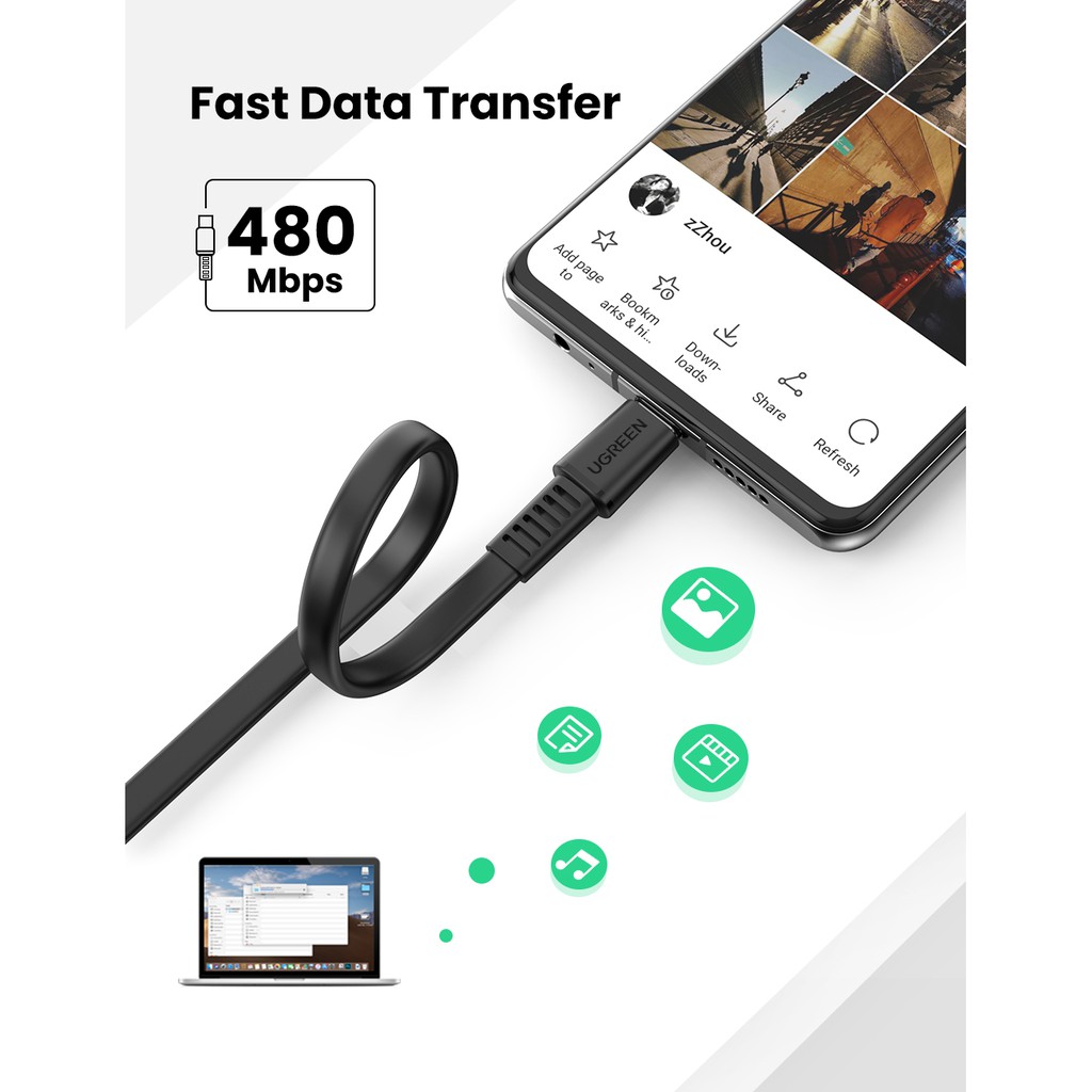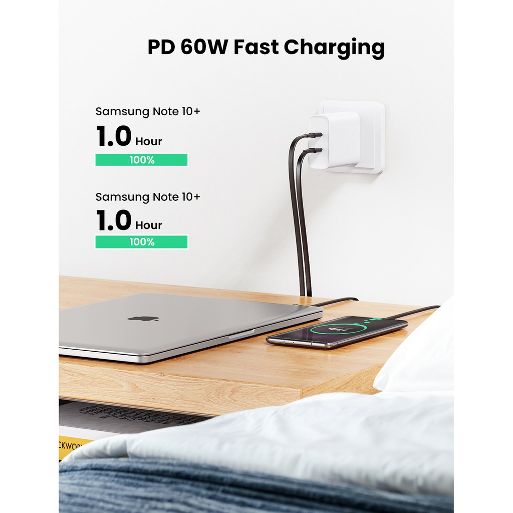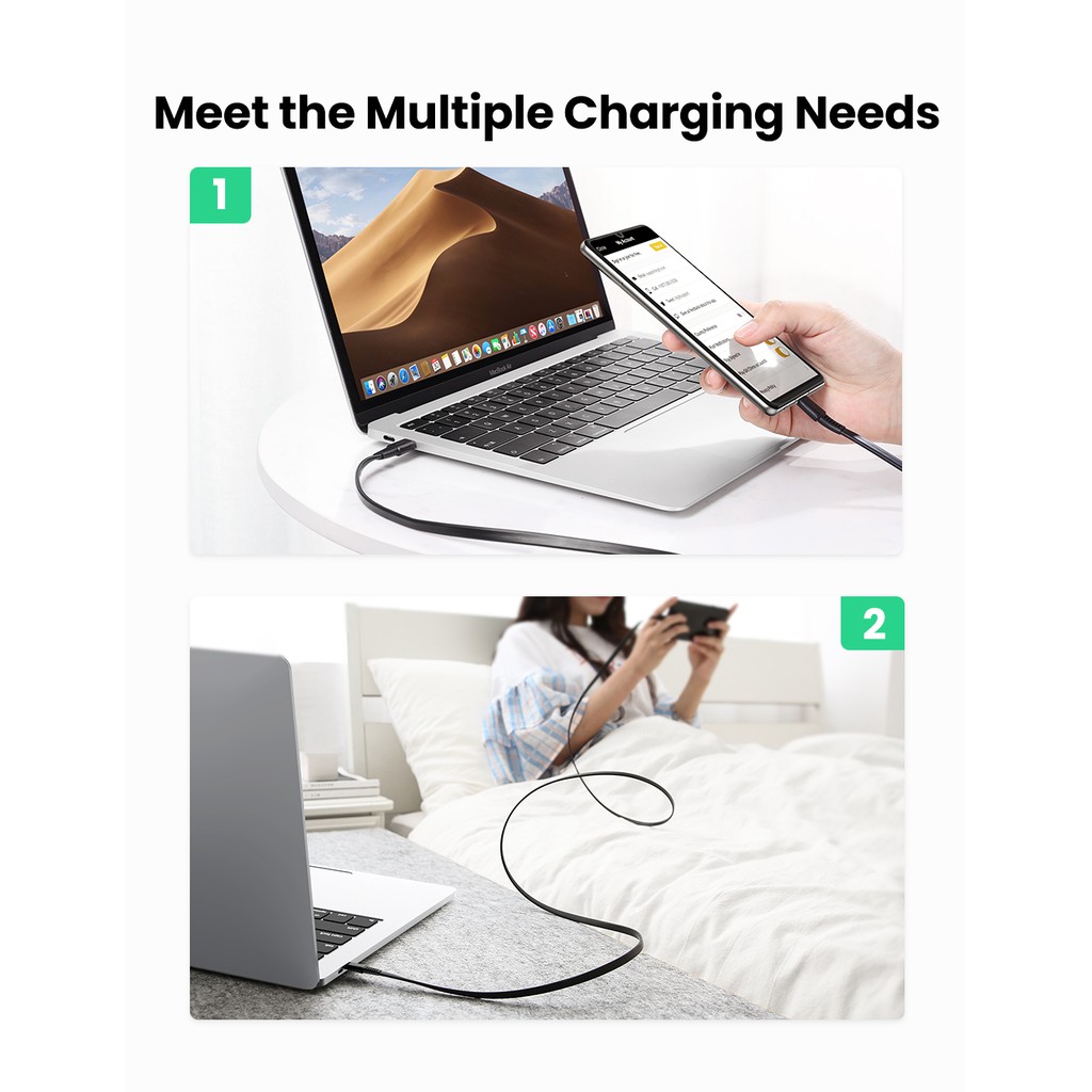 UGREEN สายชาร์จ USB C ต่อ USB C 60W USB Type C แบบชาร์จไว สำหรับ Samsung Galaxy S20 S20 Ultra Note 10 Plus A90 Google Pixel 2 3a 4 XL compatible compatible for IPad Pro 2020 compatible compatible for Macbook Pro Air 13 นิ้ว สำหรับเปลี่ยน ขนาด 1.5 ฟุต