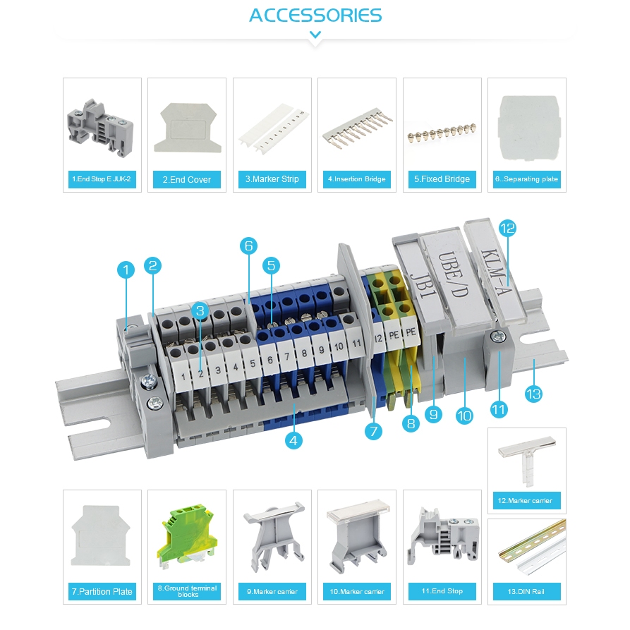 UKK Series Din Rail Unipolar Distribution Box 80A/125A/160A One Input Multi Output Terminal Block Power Connector