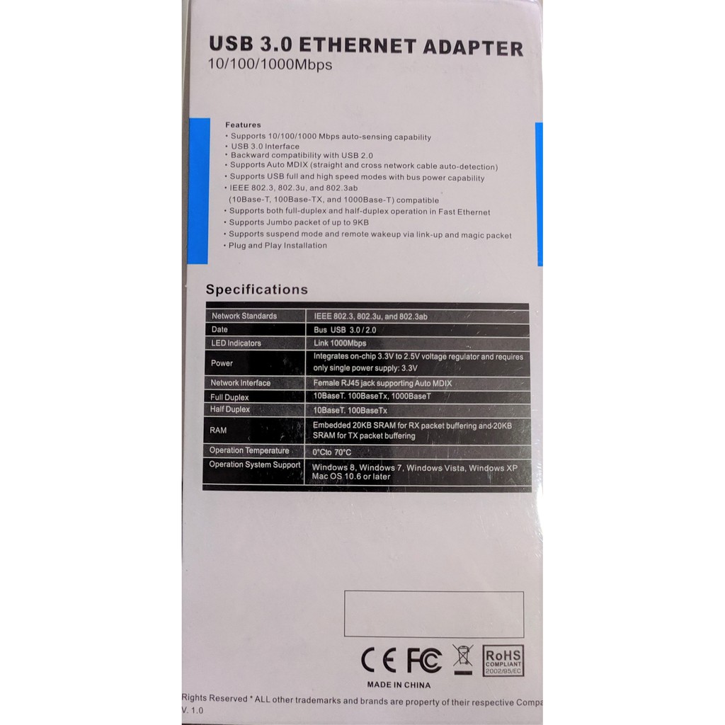 USB 3.0 to Ethernet Gigabit 10/100/1000Mbps Lan RJ45 Adapter