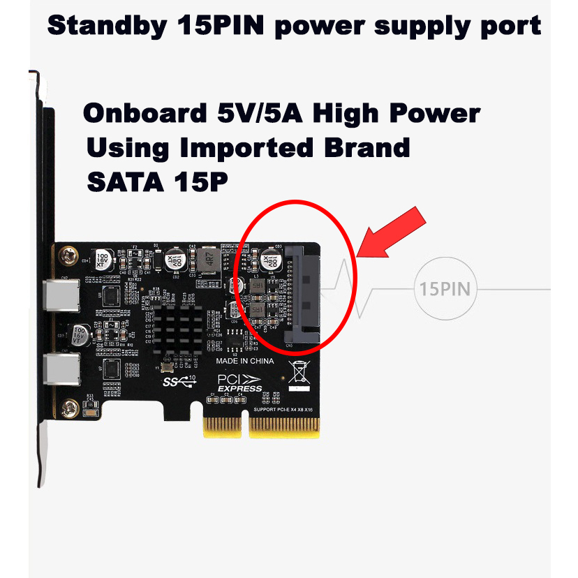 USB 3.1 PCIE PCI Express Expansion Card PCI-E 4X to USB 3.1 Gen2 10Gbps 2-Port USB C Adapter.