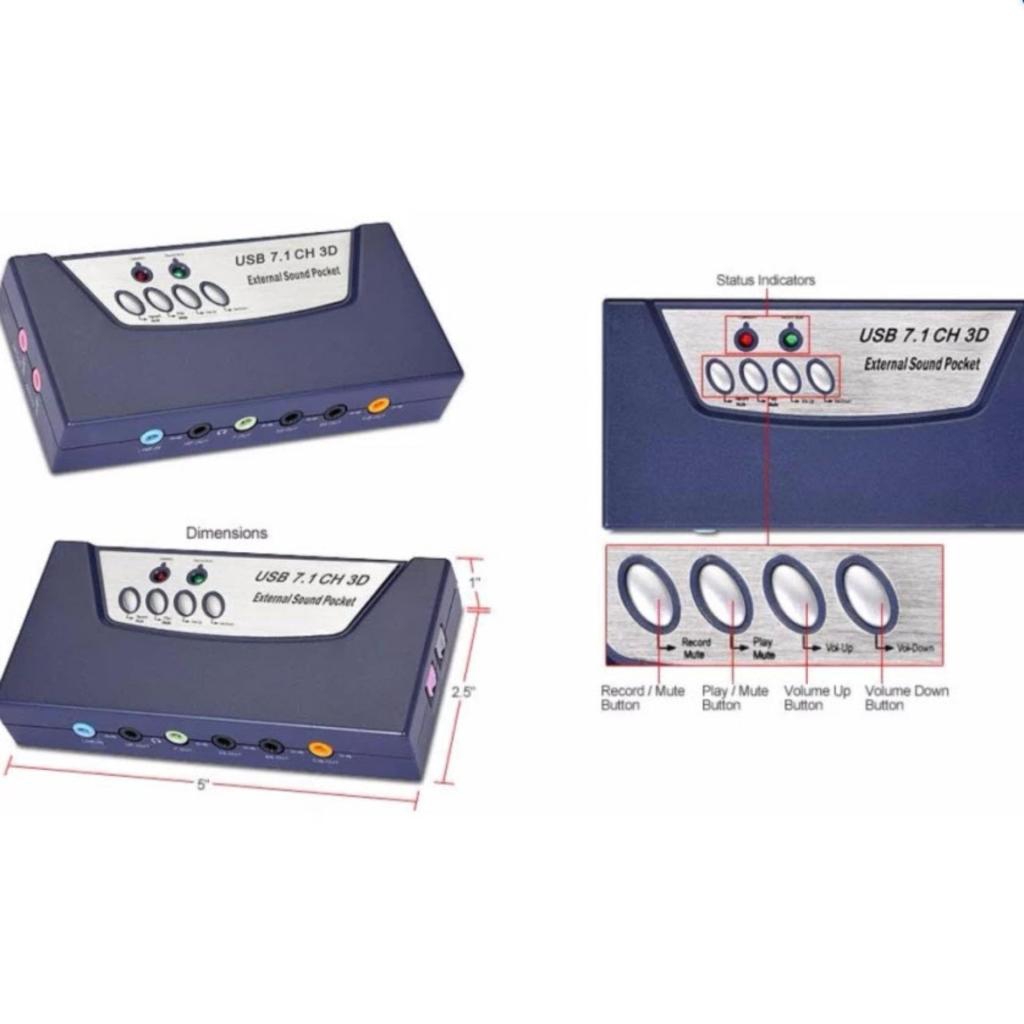 USB Sound Box Adapter / USB 2.0 7.1 Audio 8-Channel Sound Card Box ( with Double Microphone Ports for PC )SB Sound Box A