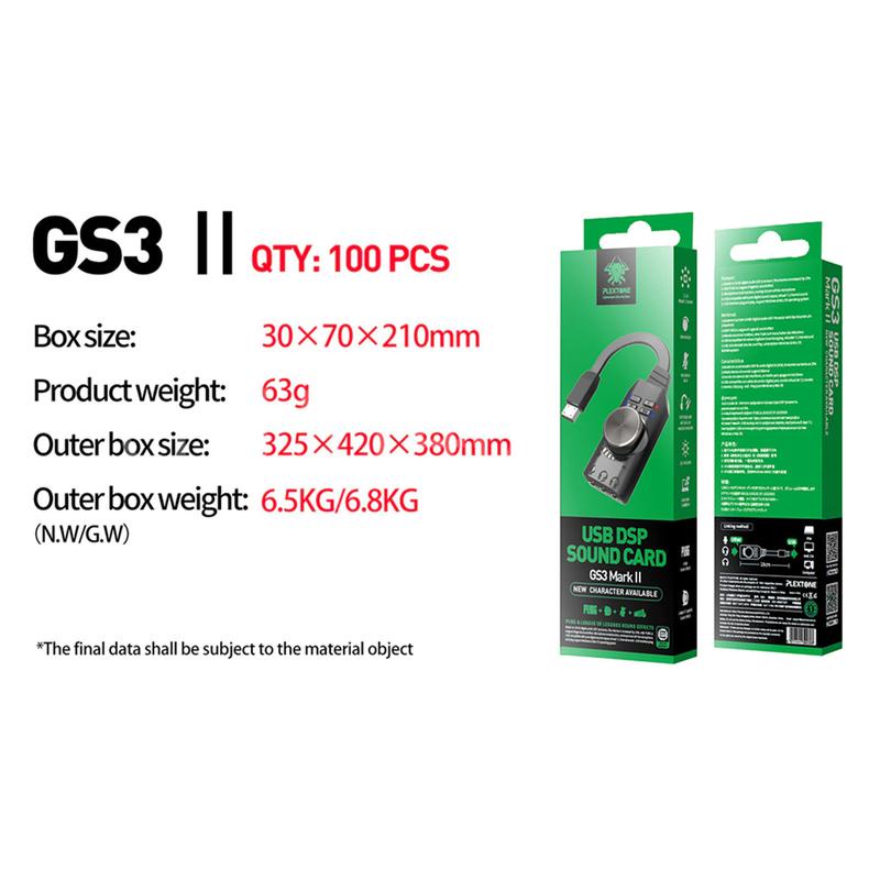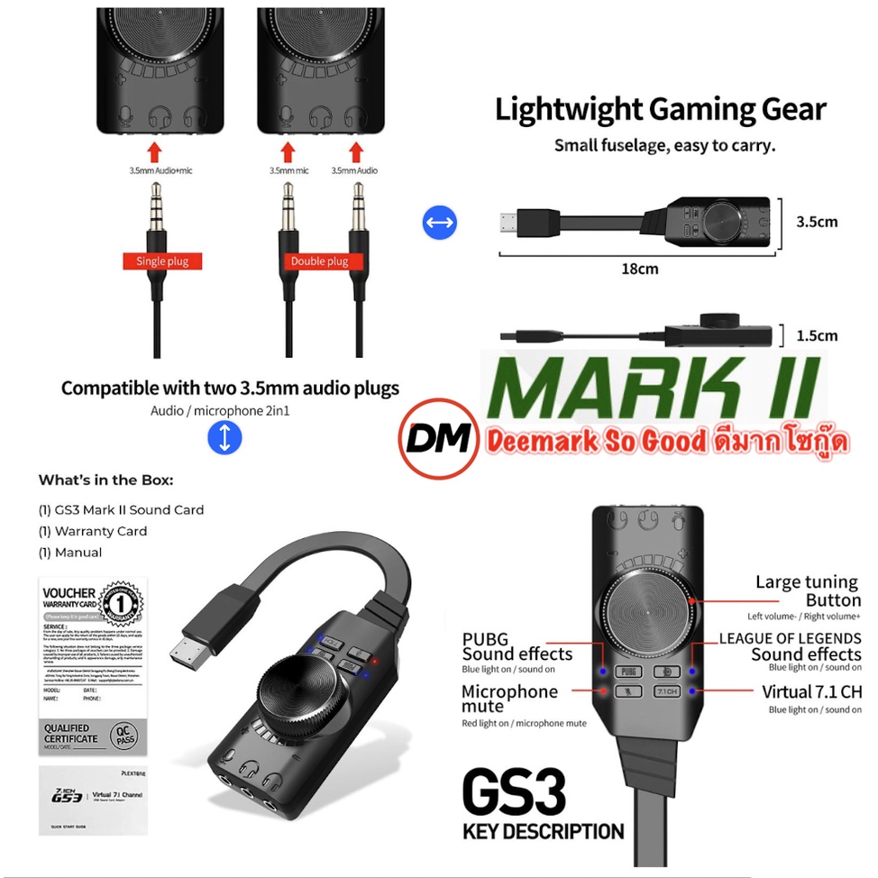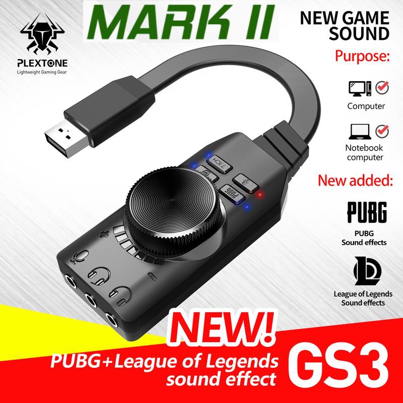 🚀ส่งเร็ว🚀 USB Sound PLEXTONE GS3 Mark II USB External Gaming Sound Card Virtual 7.1 Channel Surround Sound Adapter #DM