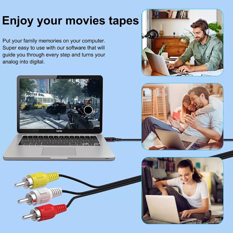 USB Video Capture Card VHS to Digital RCA to Audio Capture Device Adapter Converter Easy to Cap VCR DVR TV for Win7/8/10