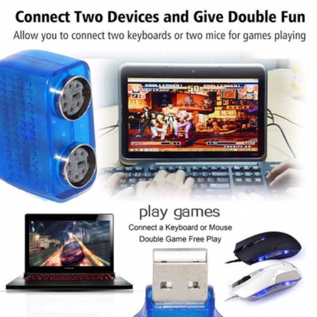 USB to PS2 Converter/Adapter,USB Type A Male to Dual PS/2 Female for Keyboard Mouse (Blue)