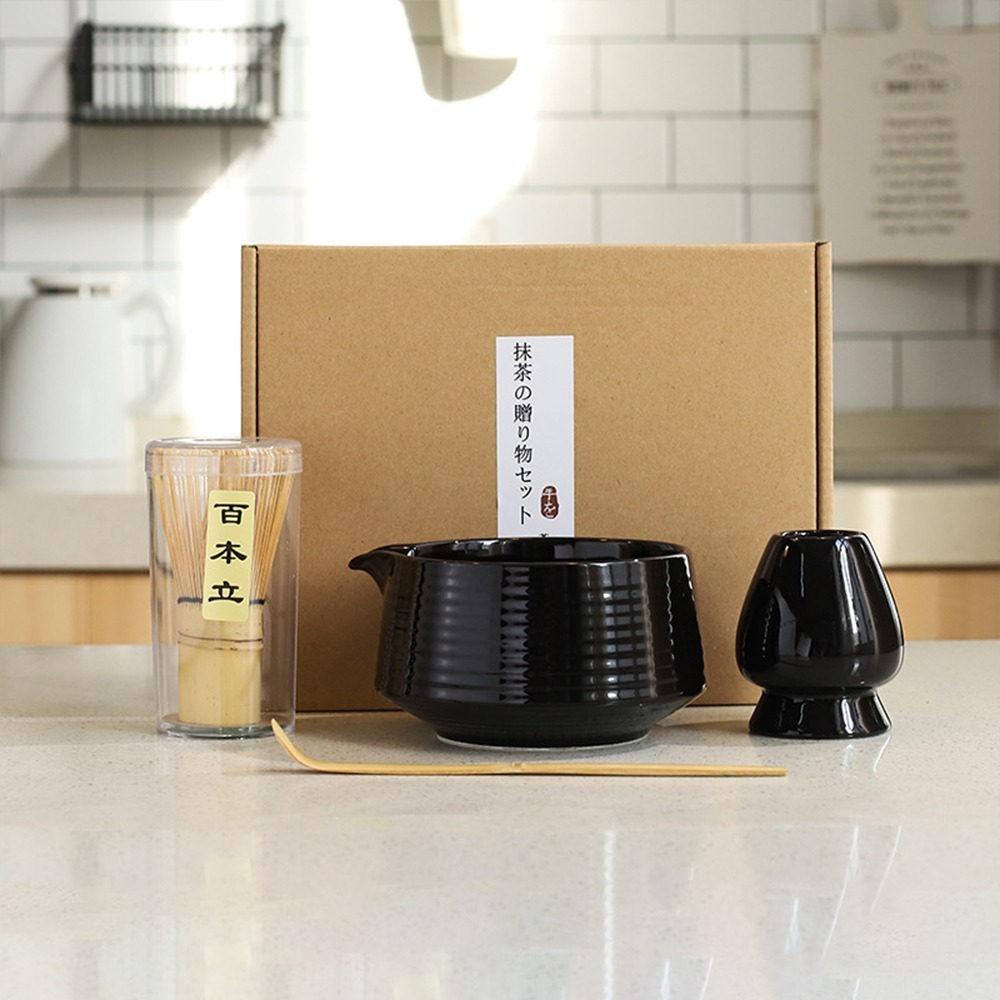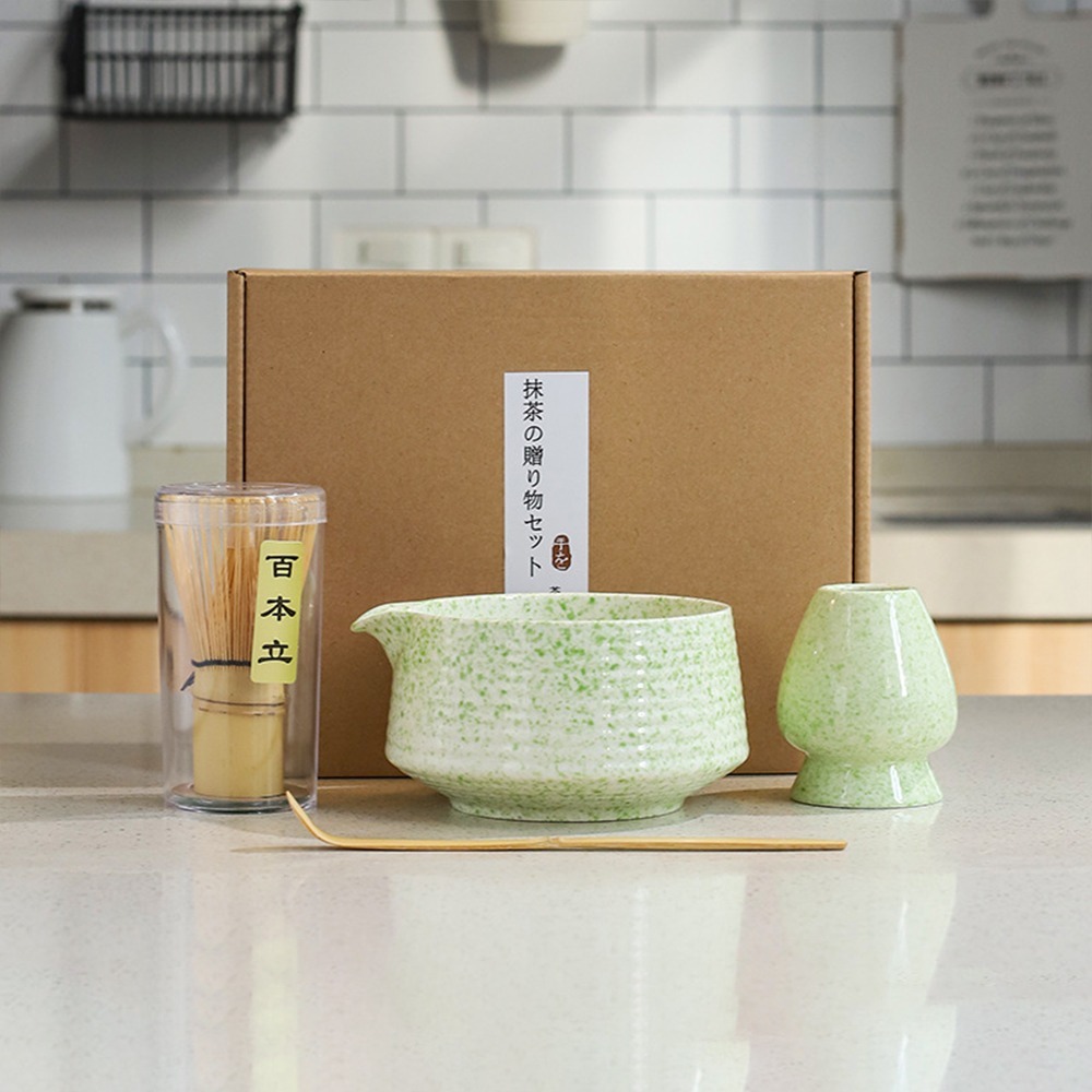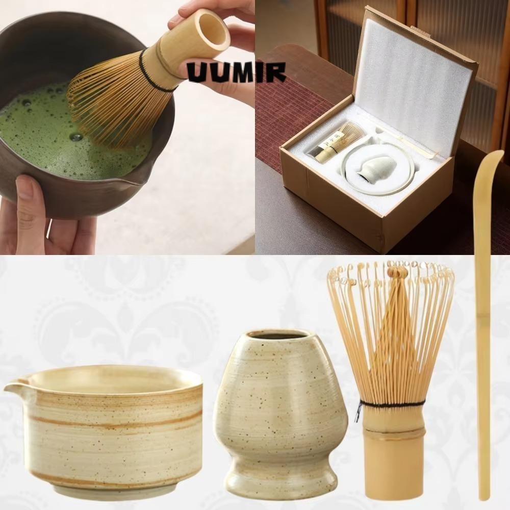 UUMIR 4PCS Matcha Whisk, Bamboo Ceramic Food Grade Japanese Matcha Tea Set, Reusable Green Tea Whisk