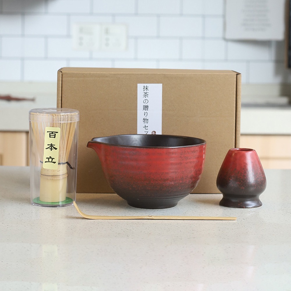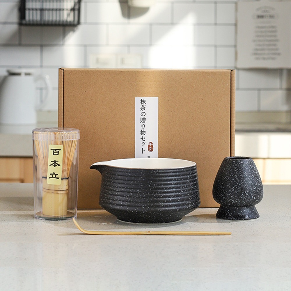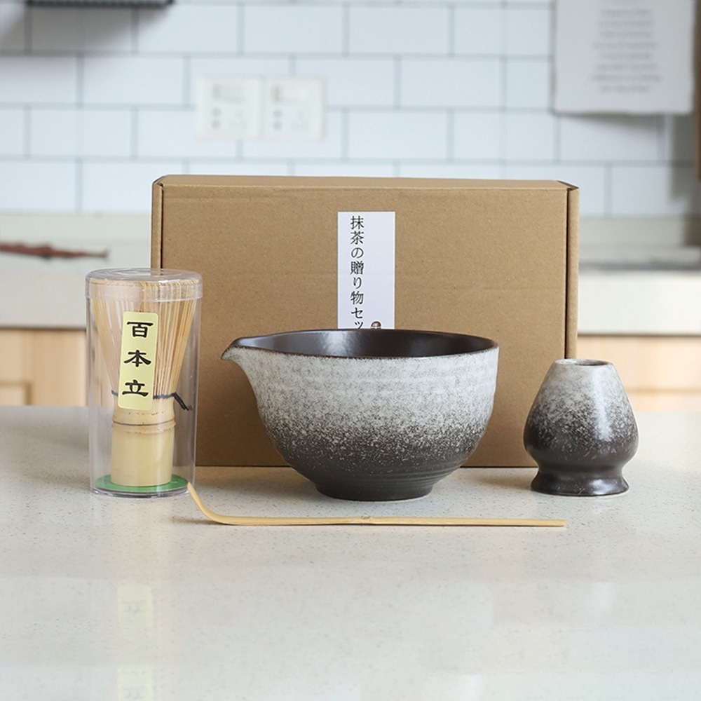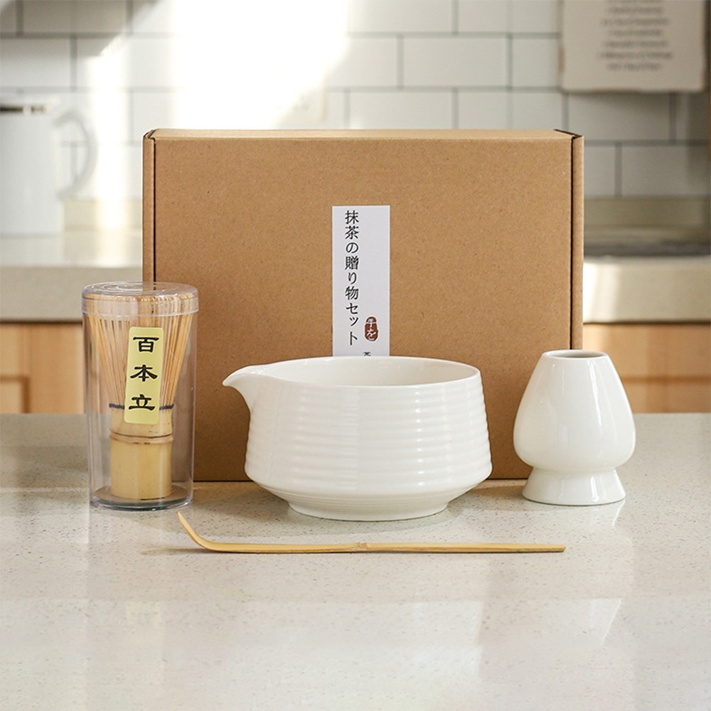 UUMIR 4PCS Matcha Whisk, Bamboo Ceramic Food Grade Japanese Matcha Tea Set, Reusable Green Tea Whisk