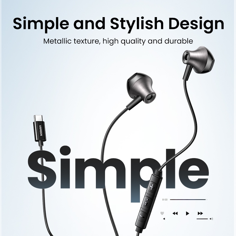 UGREEN ชุดหูฟังแบบมีสาย Type C หรือ 3.5 มม. คุณภาพเสียงไฮไฟ กึ่งอินเอียร์พ ร้อมไมโครโฟน