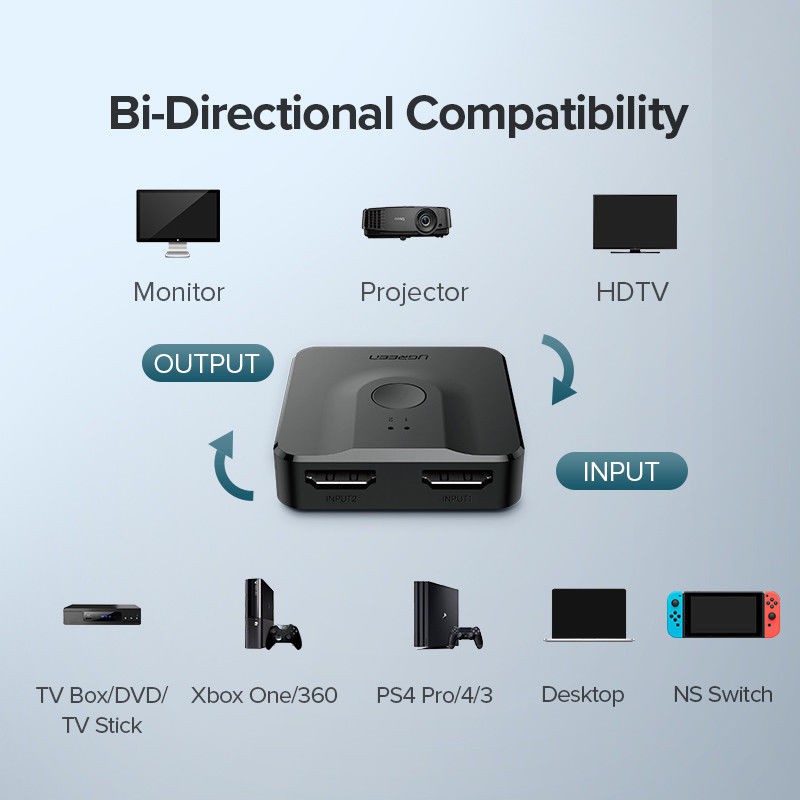 Ugreen (50966,70607) 4K@60Hz HDMI Splitter Bi-Direction HDMI Switcher 1x2/2x1 Adapter for TV Box PS4
