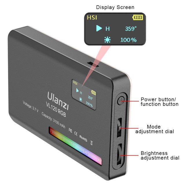 Ulanzi VL120 RGB Video Light ขนาดเล็กแบบพกพา 2500K-9000K LED ชาร์จไฟได้ในตัว ไฟติดหัวกล้อง