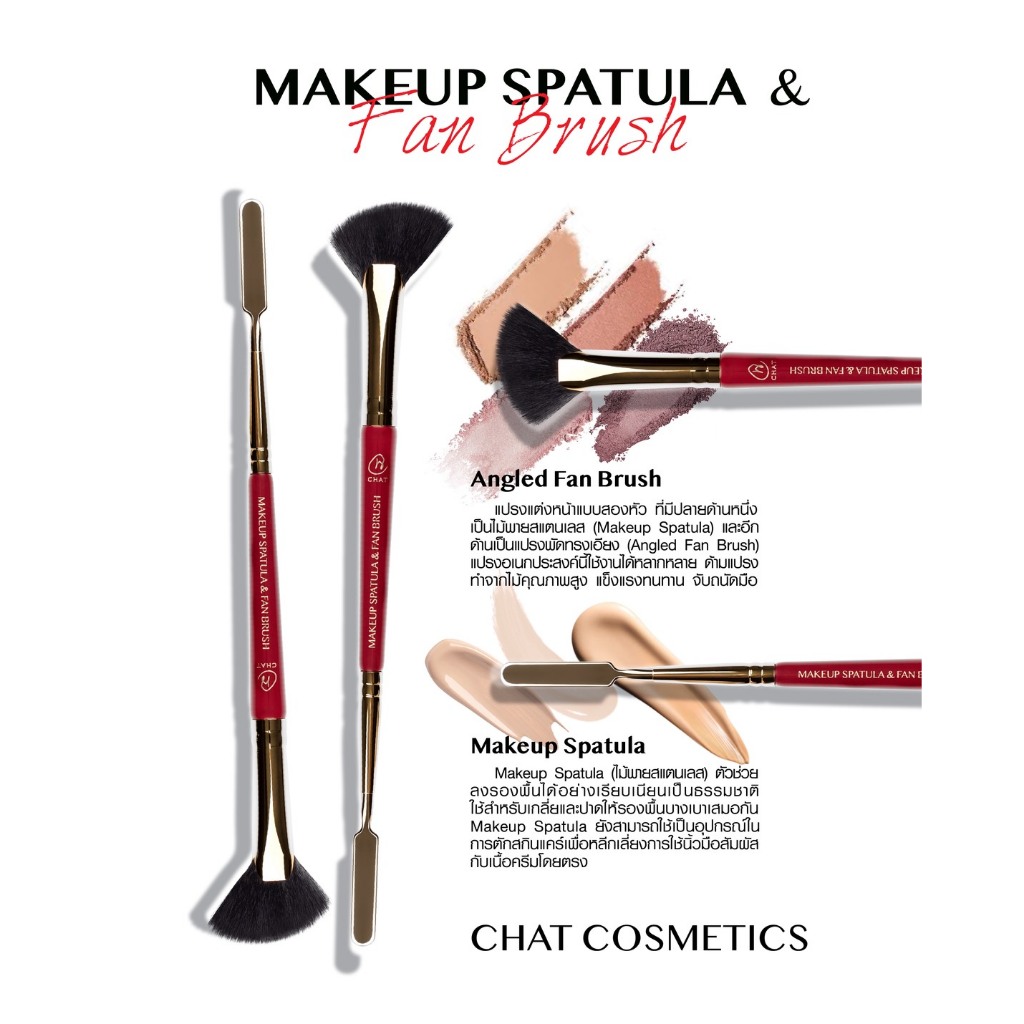[ในไลฟ์ลด 30%] CHAT Makeup Spatula & Fan Brush ( ฉัตรไม้พายสแตนเลสและแปรงพัดทรงเอียง )