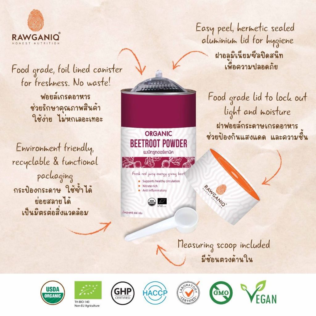 Rawganiq ผงบีทรูทออร์แกนิค Organic Beetroot Powder (300g / 100g)