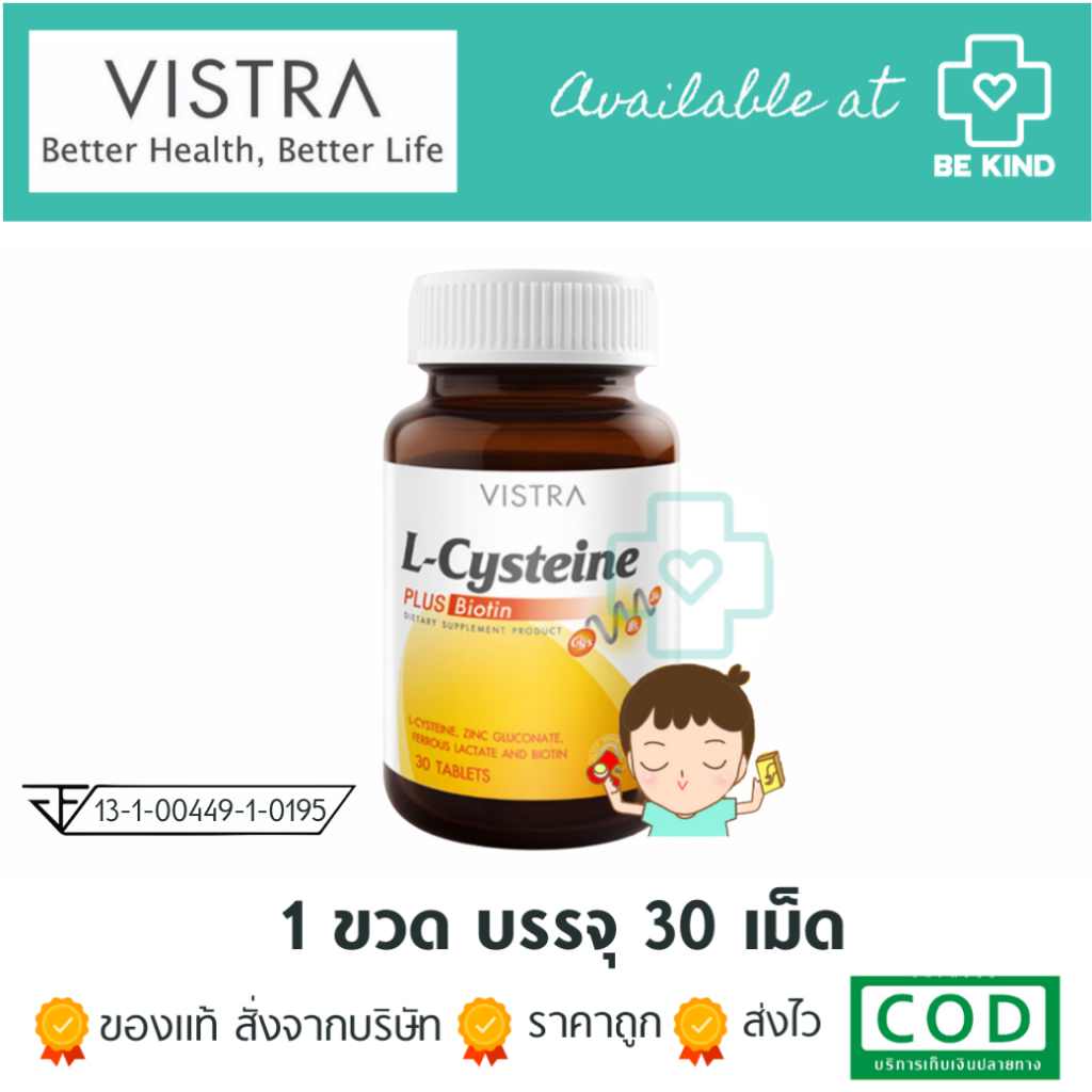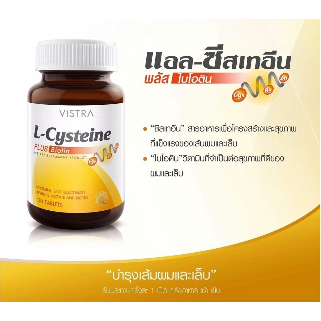 Vistra L-Cysteine Plus Biotin 30 tabs วิสทร้า แอล-ซิสเทอีน พลัส ไบโอติน 30 เม็ด