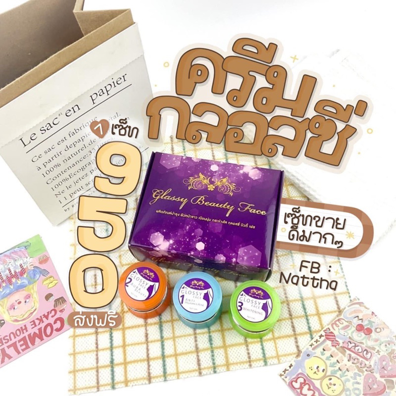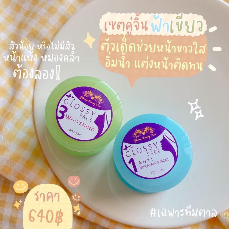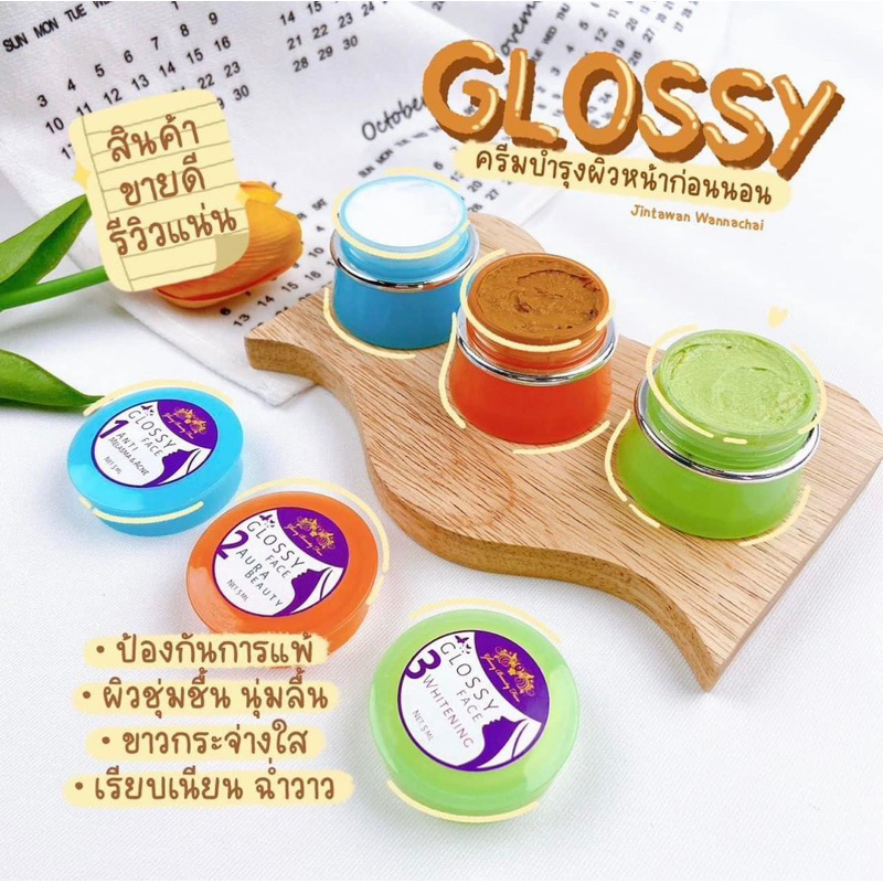 Glossy cream ครีมกลอสซี่ ✨ของแท้ จากประสบการณ์ขาย 5 ปี✨ สีเขียว สีฟ้า สีส้ม
