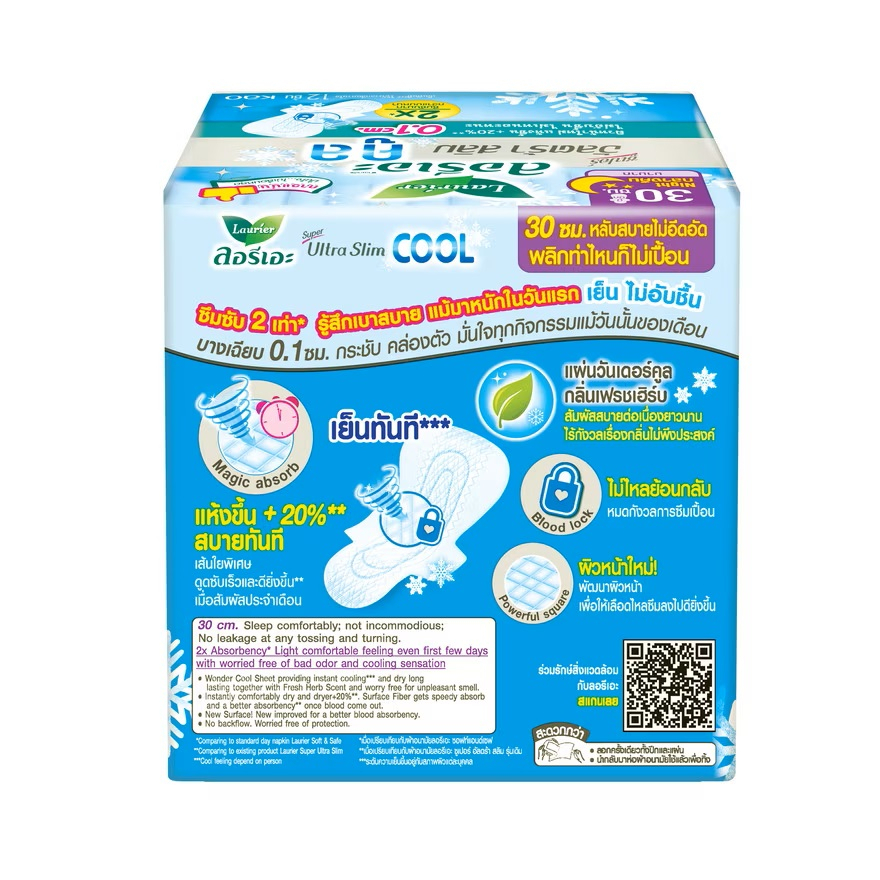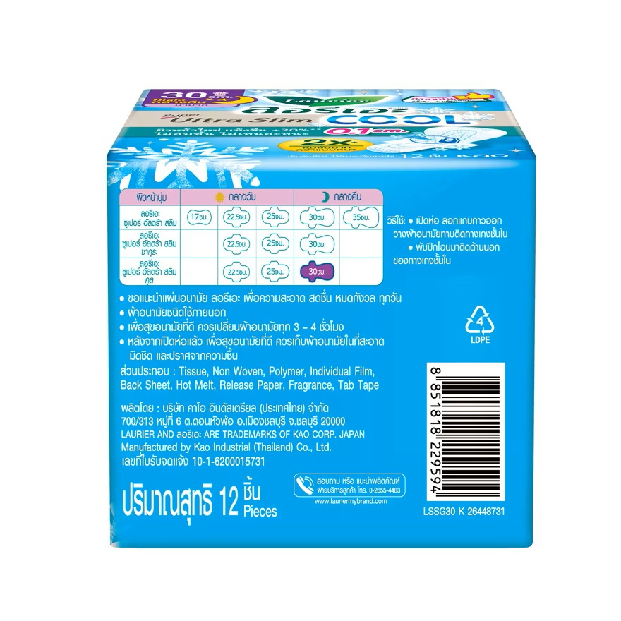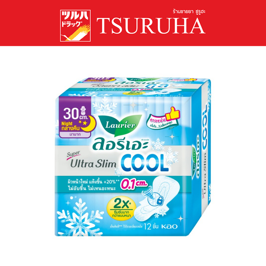 ลอรีเอะ ผ้าอนามัย ซูเปอร์ อัลตร้า สลิม คูล 30 ซม. 12 ชิ้น/Laurier Super Ultra Slim Cool 30 cm. 12 pcs