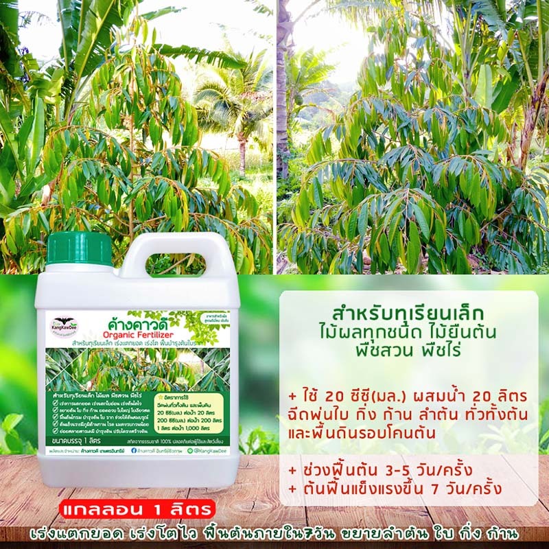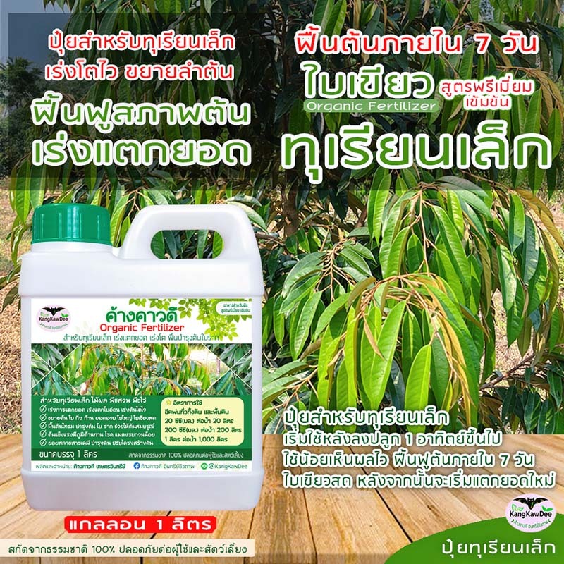 ปุ๋ยทุเรียนเล็ก ไม่โต โตช้า ใบเหลือง ค้างคาวดี(ของแท้)1ลิตร เร่งแตกยอด เร่งต้นโตไว F1D-1L