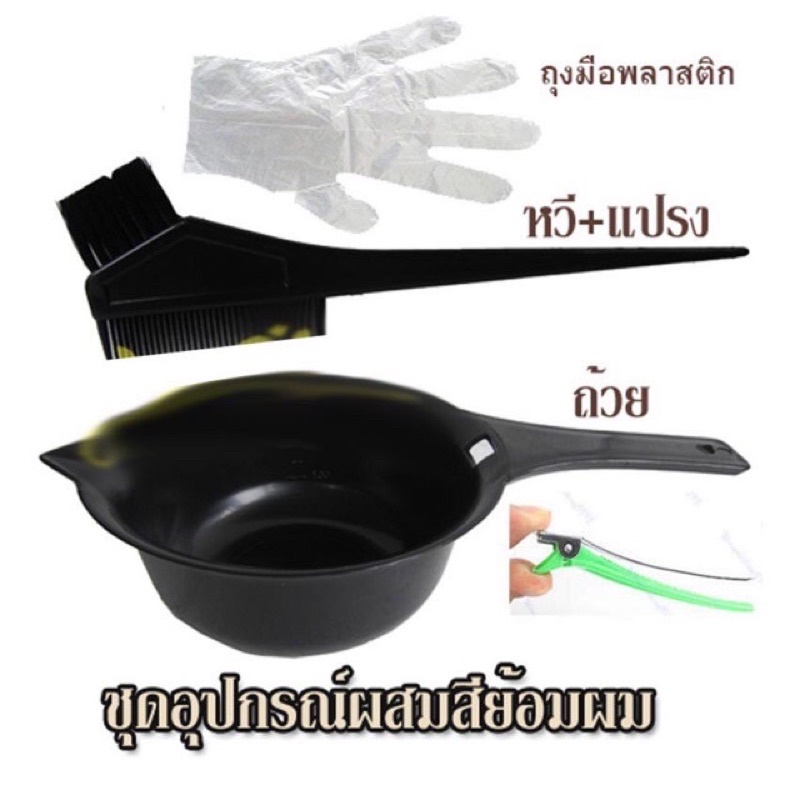 ส่งฟรี/มีไลฟ์ อุปกรณ์โกรกสีผม เซ็ตถ้วยผสมสี และ แปรงย้อมผม