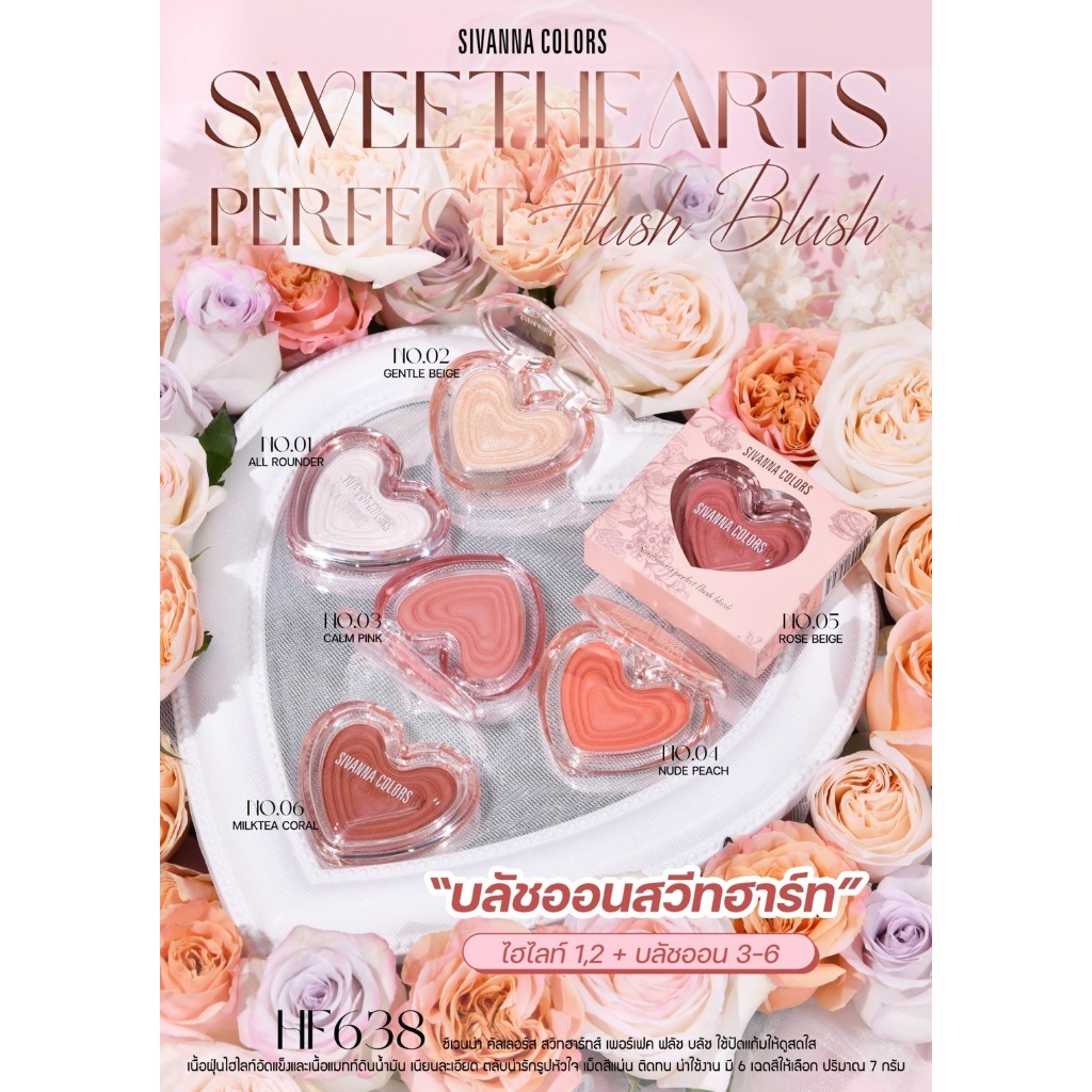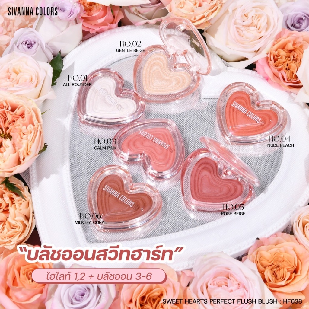 HF638 SIVANNA COLORS SWEET HEARTS PERFECH FLUSH BLUSH ปัดแก้มตลับรูปหัวใจ สุดน่ารัก สีสันสดใส