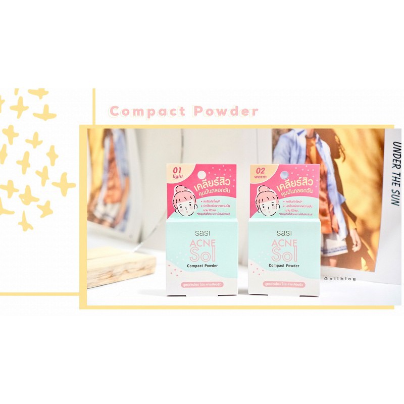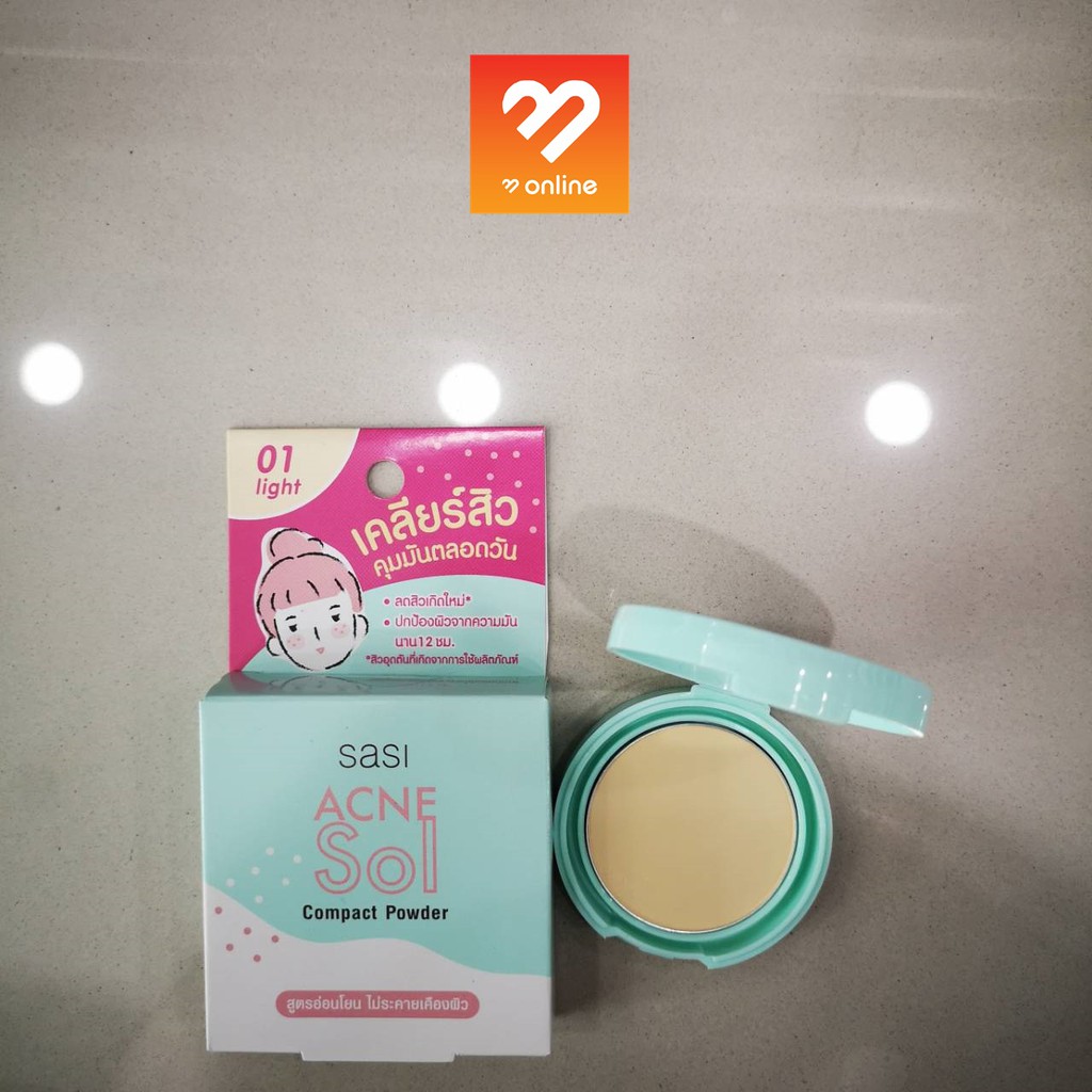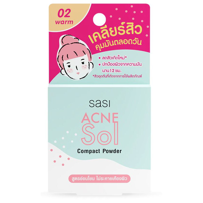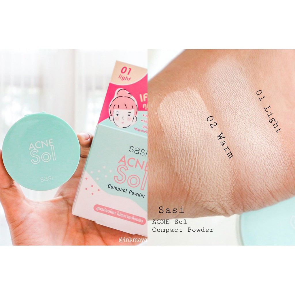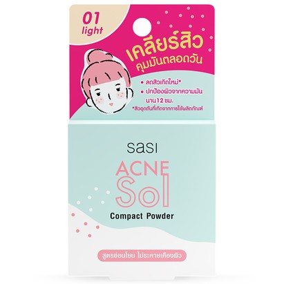 SASI Acne Sol Compact Powder 4.5 g. ศศิ แอคเน่ โซล คอมแพค พาวเดอร์ แป้งพัฟคุมมัน เนื้อนุ่ม ลดปัญหาสิว 01 - 02