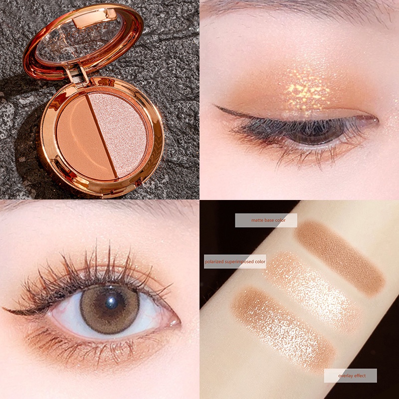 อายแชโดว์ อายแชโดว์พาเลท พาเลตอายแชโดว์กันน้ำ เนื้อใยไหม ประกายชิมเมอร์ Eyeshadow 2สี เตรียมจัดส่งสินค้า YUE