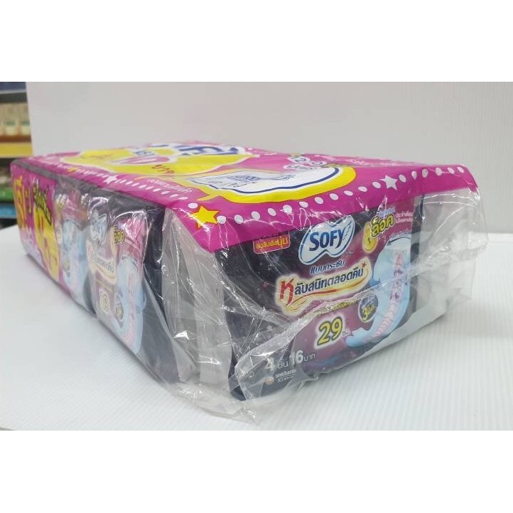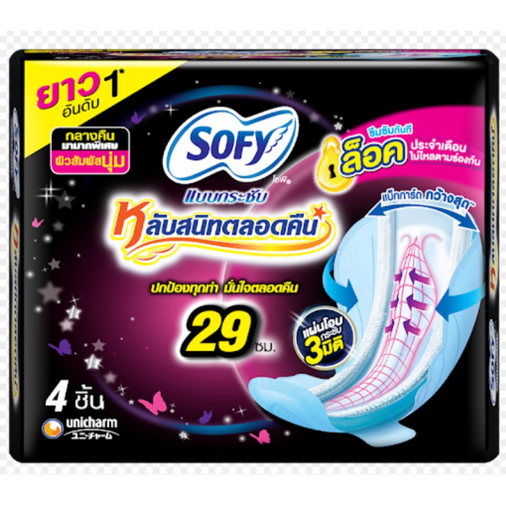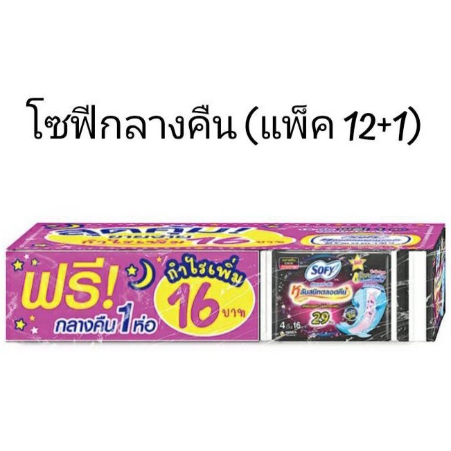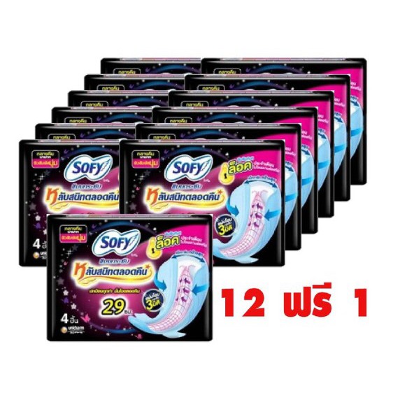 NS (ยกแพค 12 ห่อ ฟรี+ 1) Sofy ผ้าอนามัย โซฟีแบบกระชับกลางคืน 29 ซม. หนานุ่ม มามาก (ห่อละ 4 ชิ้น*13)