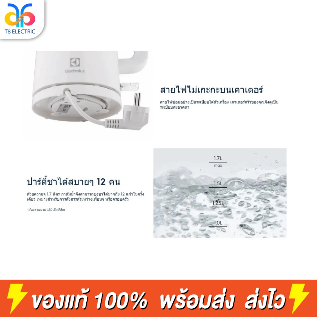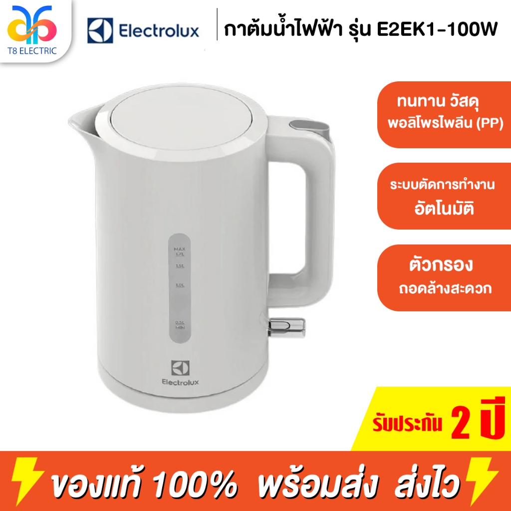 กาต้มน้ำไฟฟ้า ELECTROLUX รุ่น E2EK1-100W 2200 วัตต์ ขนาด 1.7 ลิตร สีขาว รับประกัน 2 ปี