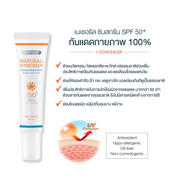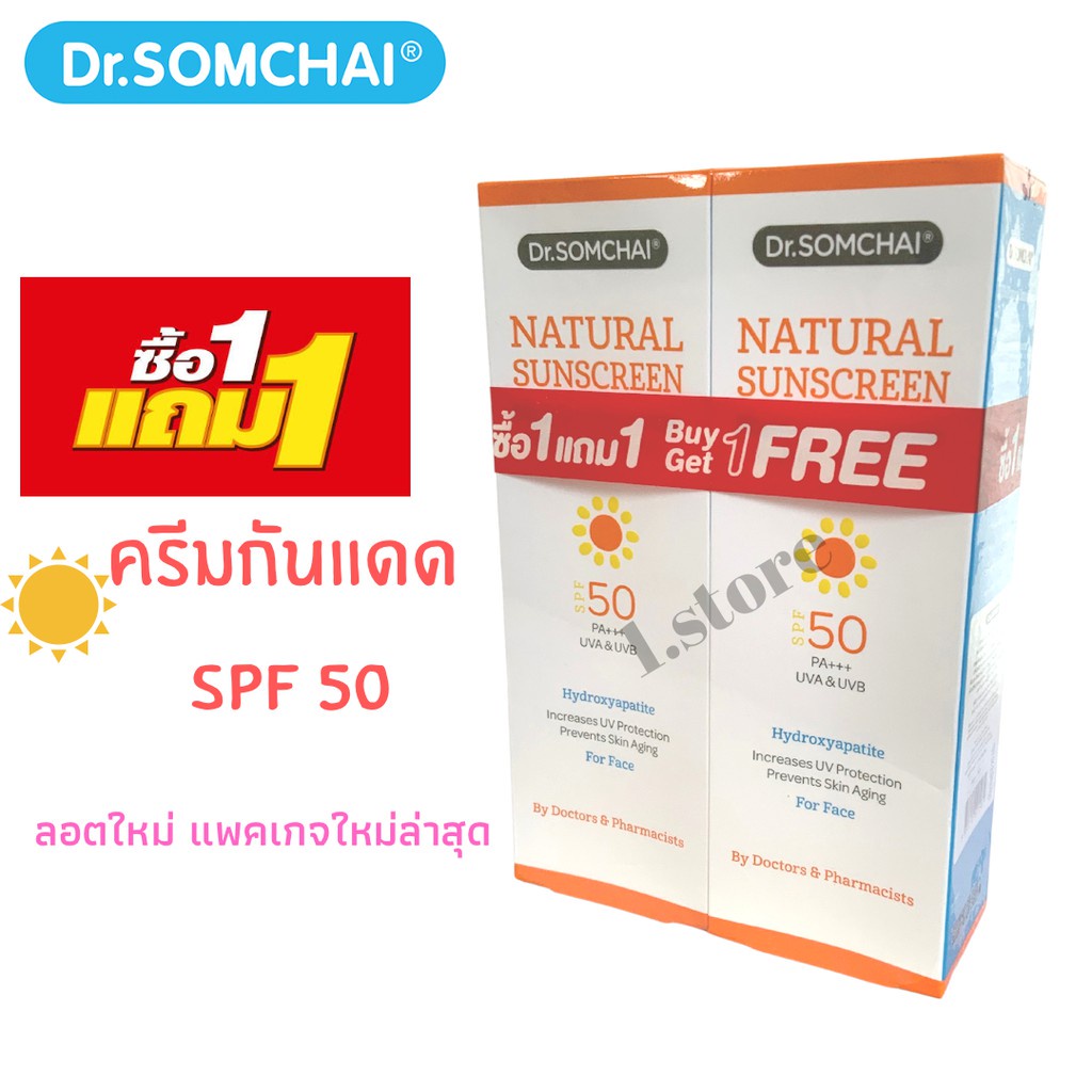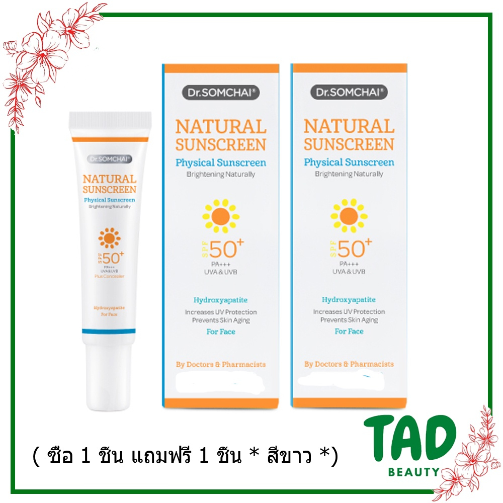 * 1แถมฟรี1* Dr.Somchai Natural Sunscreen ครีมกันแดด ดร.สมชาย เนอเชอรัล ซันสกรีน SPF50 (20g.) สีเนื้อ / สีขาว