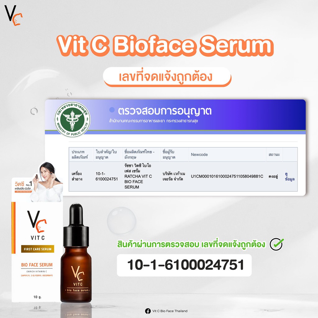 Vit C Bio Face Serum วิท ซี ไบโอ เซรั่ม [10 ml.] เซรั่มวิตามินซี