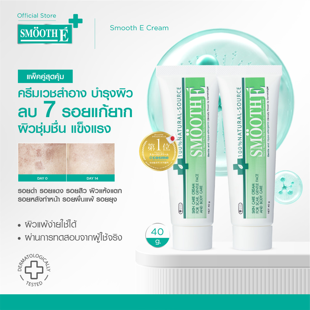 [แพ็คคู่สุดคุ้ม] Smooth E Cream 40g. สมูท อี ครีมลดเลือนริ้วรอย ผื่นแดง รอยหัตถการ รอยแผลเป็น จุดดำจากสิว ผิวชุ่มชื้น