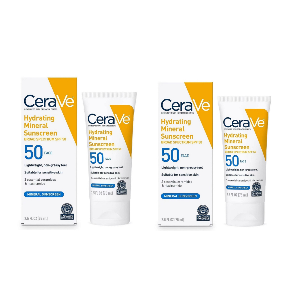 🌈ของแท้ 100%💥CeraVe Hydrating Mineral Sunscreen SPF 50 Face 75 ml ครีมกันแดดแร่ธาตุให้ความชุ่มชื้น