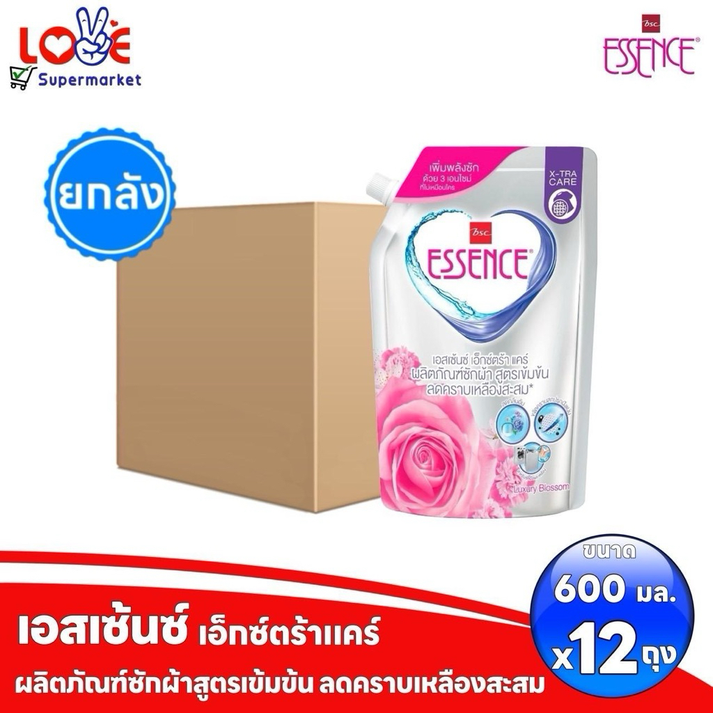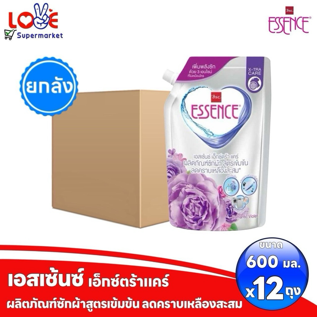 (ยกลัง 12 ถุง) Essence เอสเซ้นซ์ เอ็กซ์ตร้าแคร์ ผลิตภัณฑ์ซักผ้า สูตรเข้มข้น ลดคราบเหลืองสะสม ขนาด 600 มล. x 12 ถุง