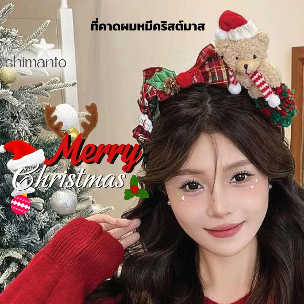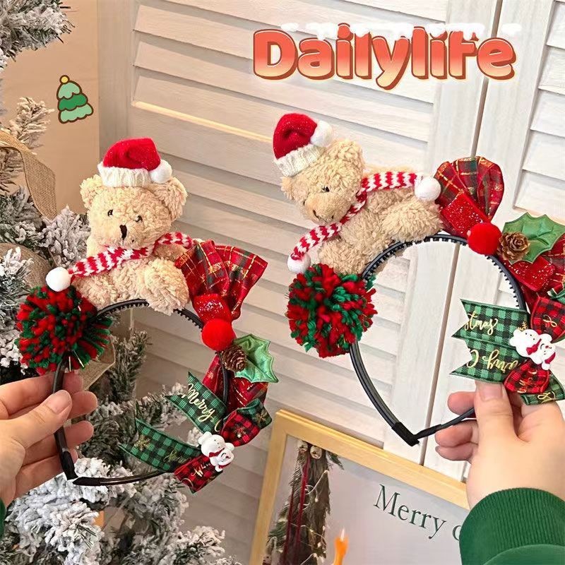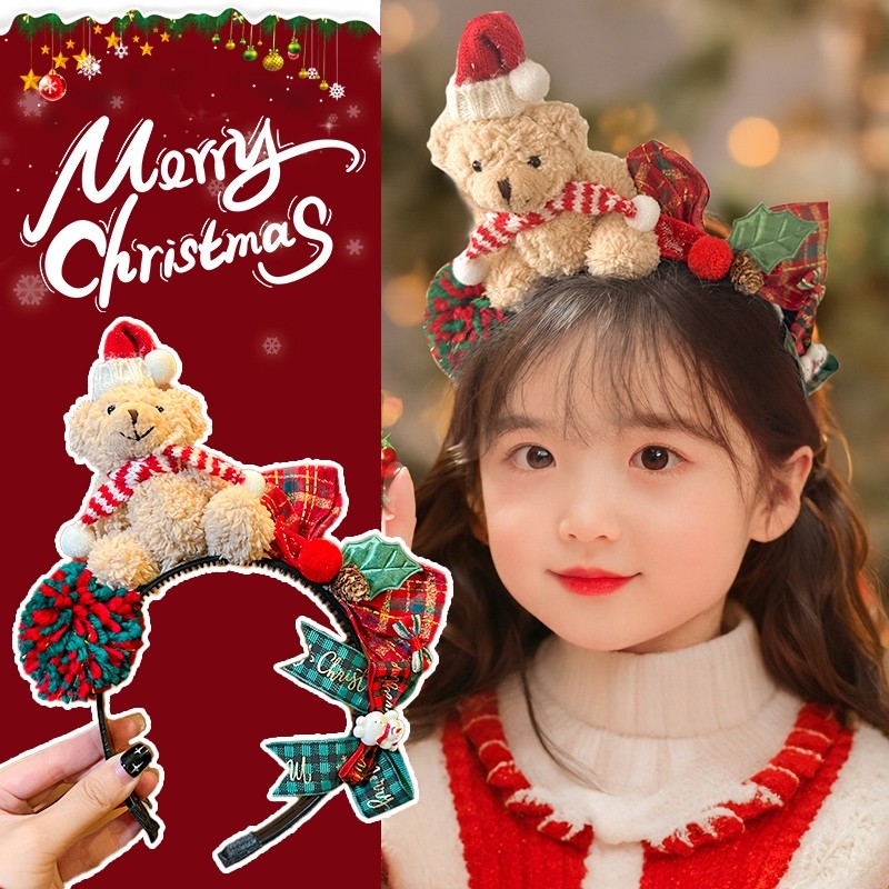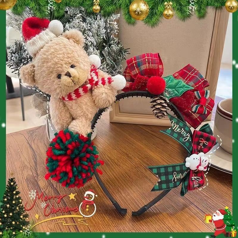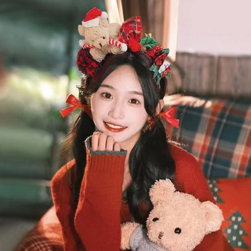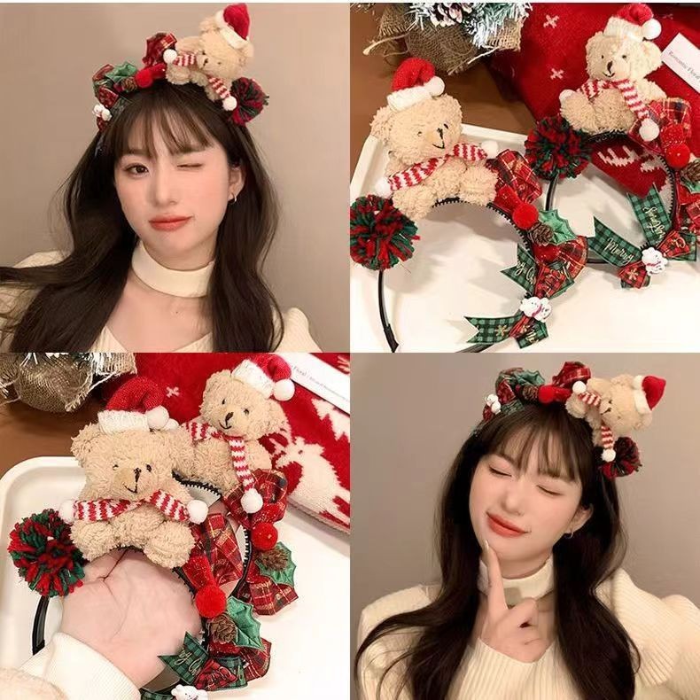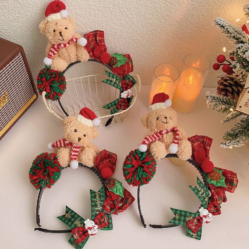 ที่คาดผม ธีมคริสต์มาส หมีสีน้ำตาล เครื่องประดับผู้หญิง สำหรับเทศกาลคริสต์มาส หมวกปาร์ตี้ปีใหม่