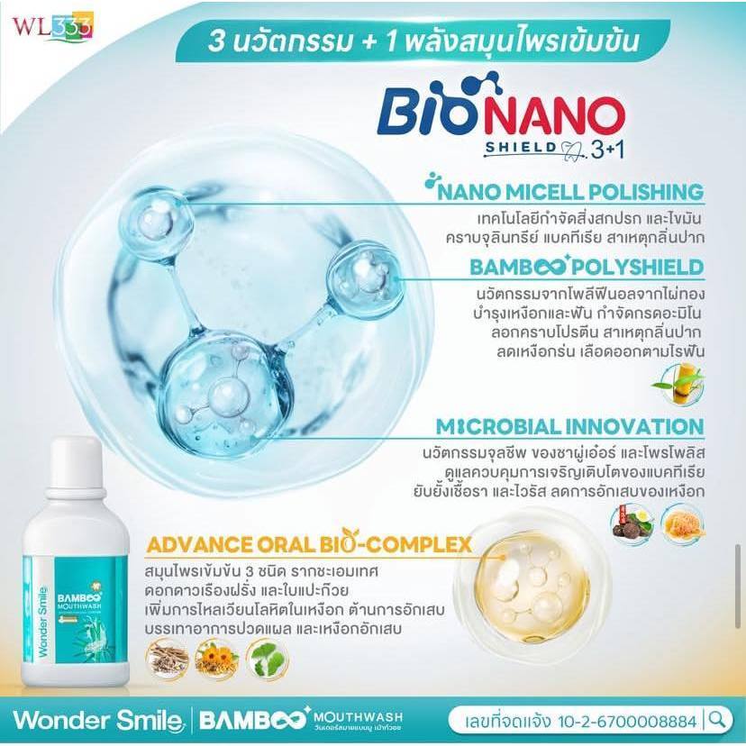 WonderSmile น้ำยาบ้วนปาก Bamboo Mouthwash ปริมาณ 300 มล. สำหรับดูแลช่องปากและฟัน 404roiet