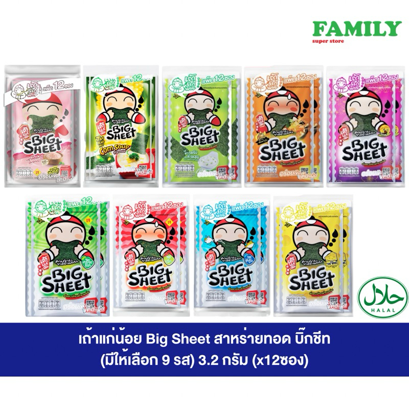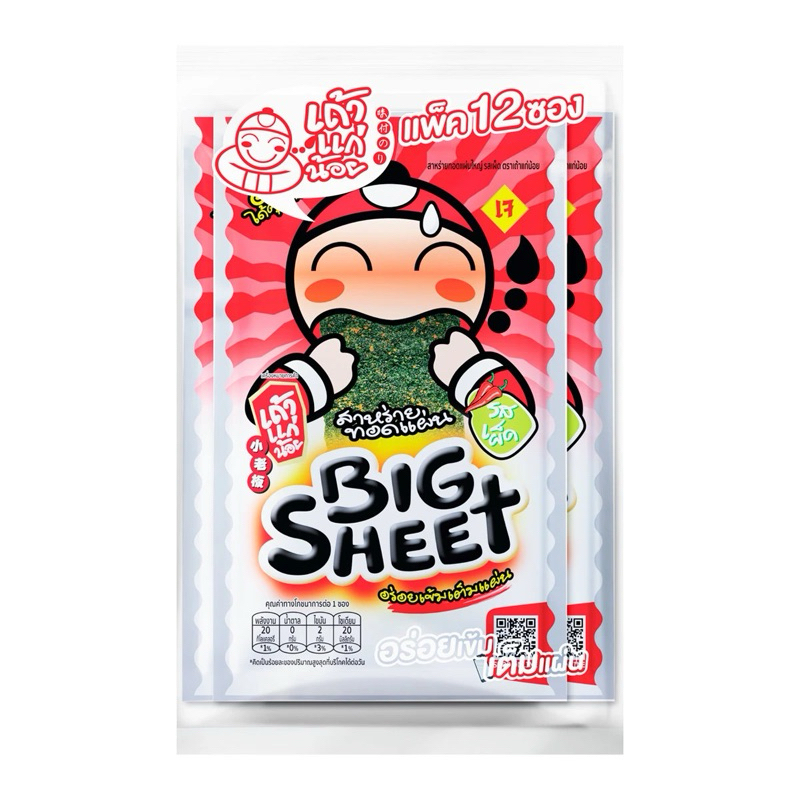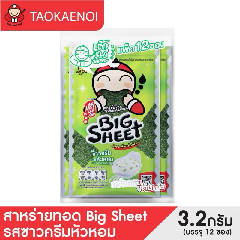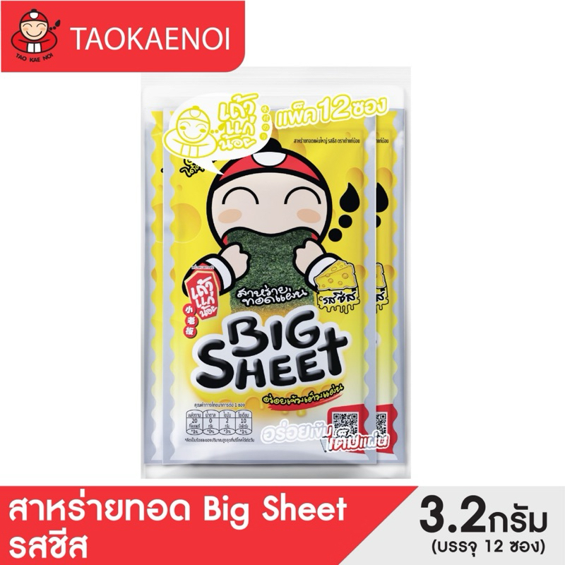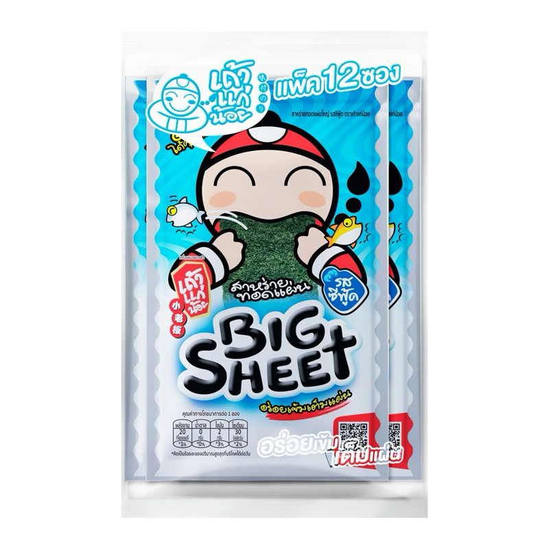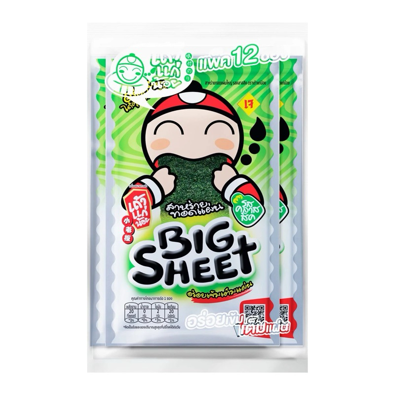 เถ้าแก่น้อย Big Sheet สาหร่ายทอด แบบแผ่น บิ๊กชีท 3.2 กรัม (x12ซอง)