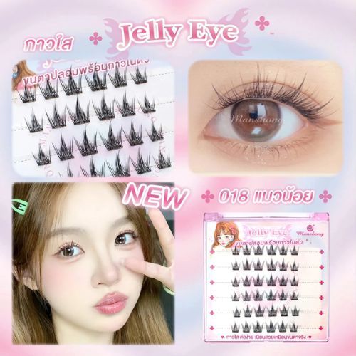 (แถมแหนบ) Manshong Jelly Eye รุ่น Y2K แมนชองขนตาปลอมช่อมีกาวในตัว แบบกาวใส 36 ช่อ