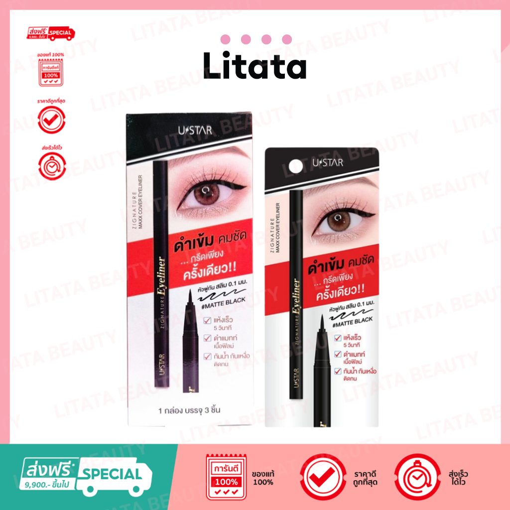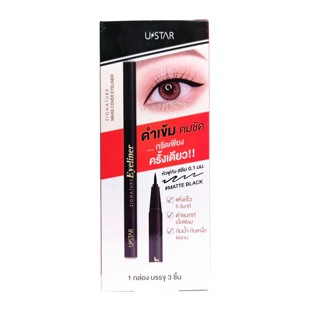 [กล่องx3] Ustar Zignature Maxx Cover Eyeliner ยูสตาร์ ซิกเนเจอร์ แม็กซ์ คัฟเวอร์ อายไลเนอร์ 0.7g