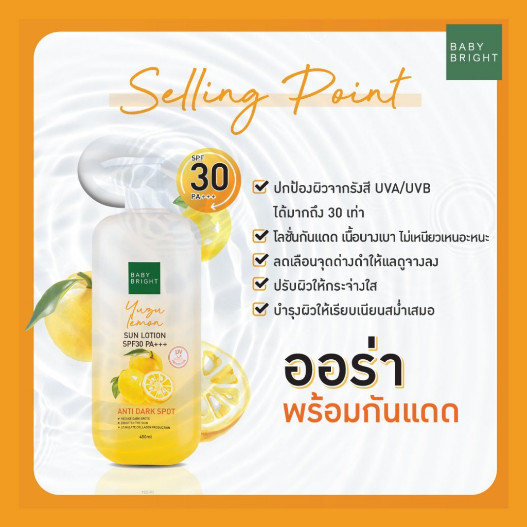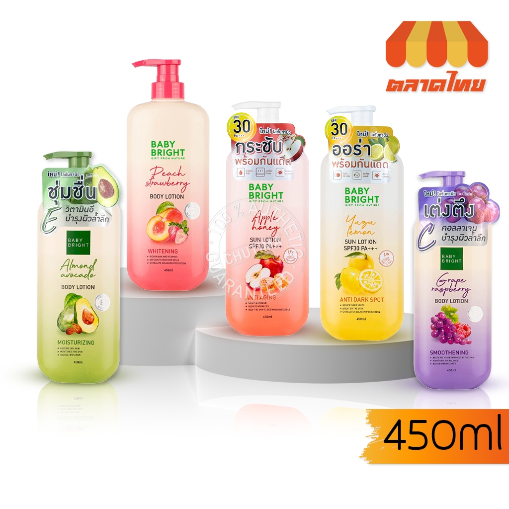 เบบี้ไบร์ท โลชั่นบำรุงผิวกาย/ กันแดด สูตรผลไม้ เนื้อบางเบา Baby Bright body lotion 450ml.