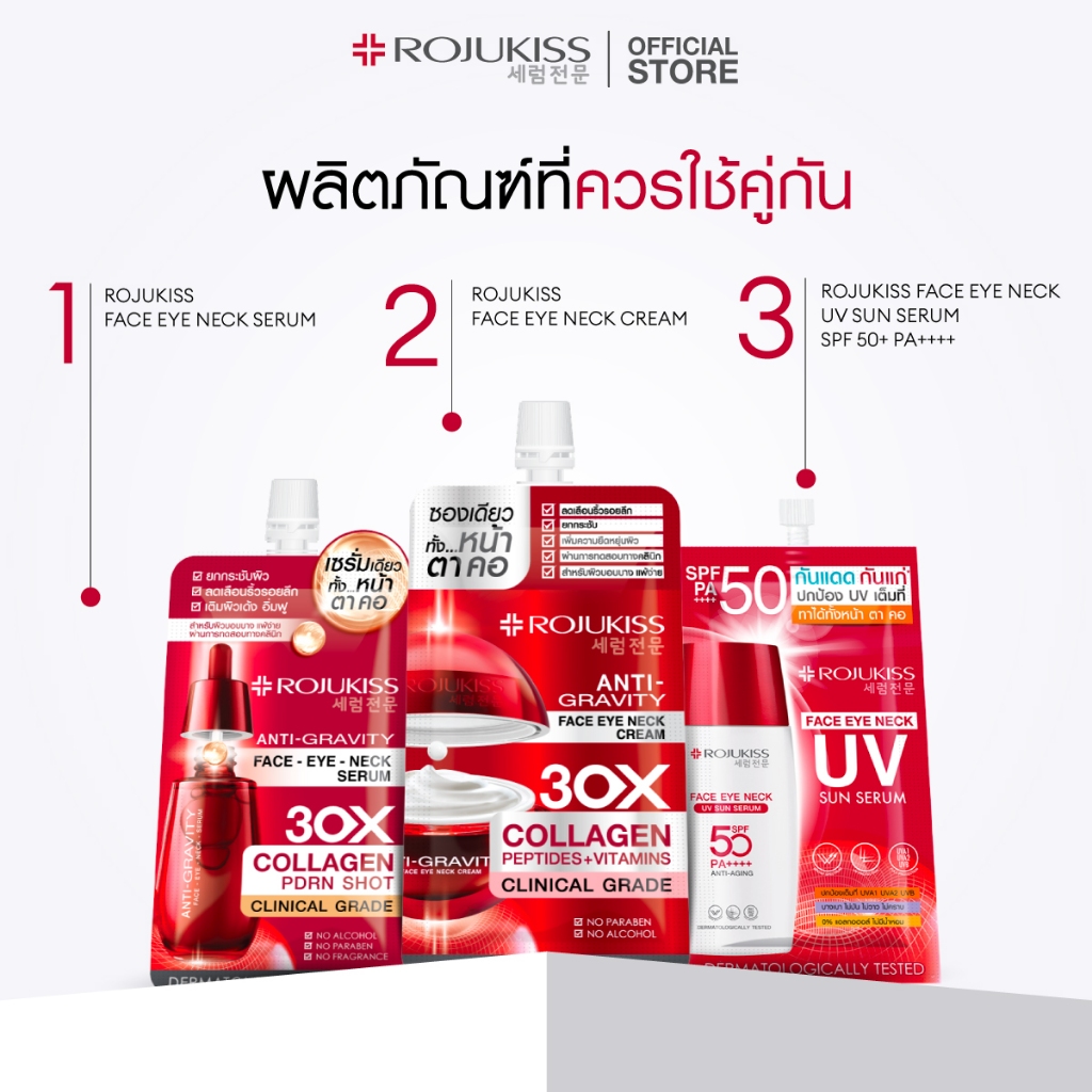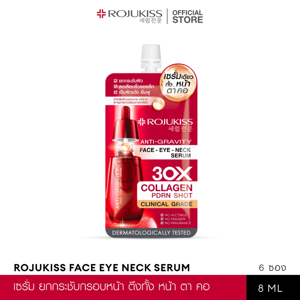 ROJUKISS ANTI-GRAVITY Face Eye Neck Serum 8ml โรจูคิส เซรั่มยกกระชับ บำรุงผิวหน้า ตา คอ