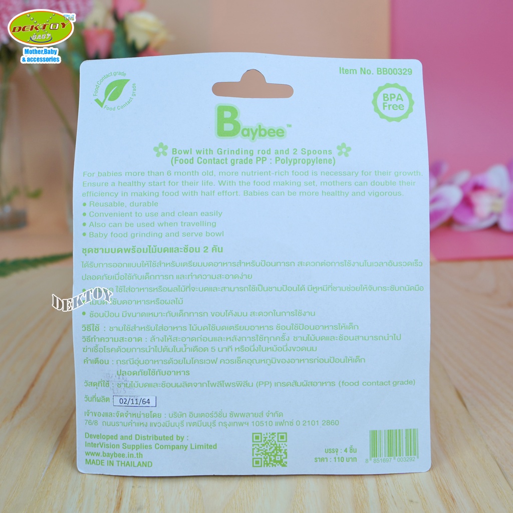 Baybee เบย์บี ชามบดอาหารพร้อมช้อน2คัน 0329