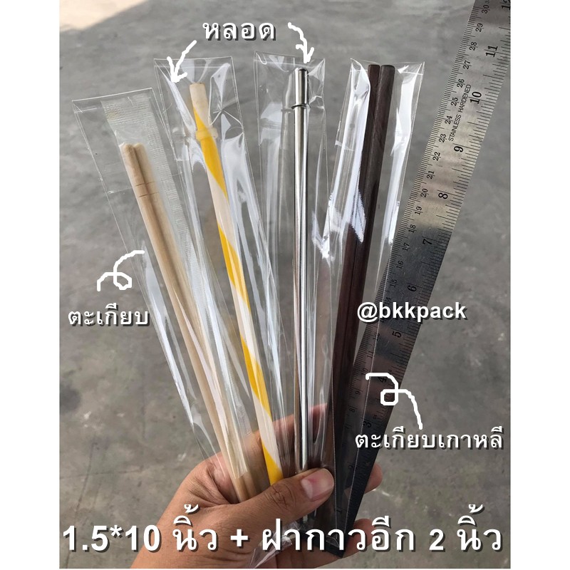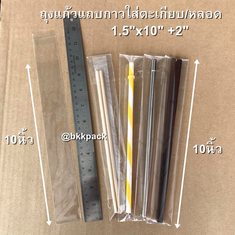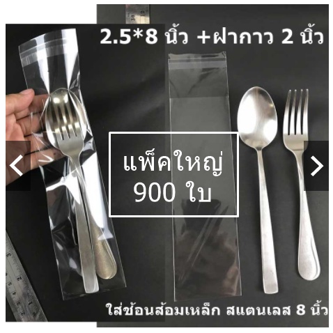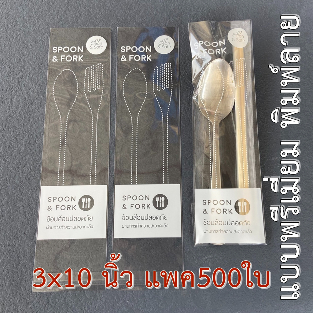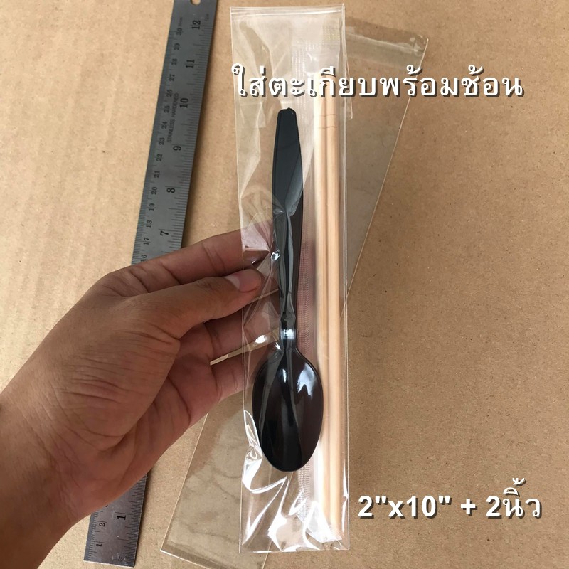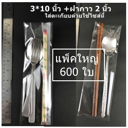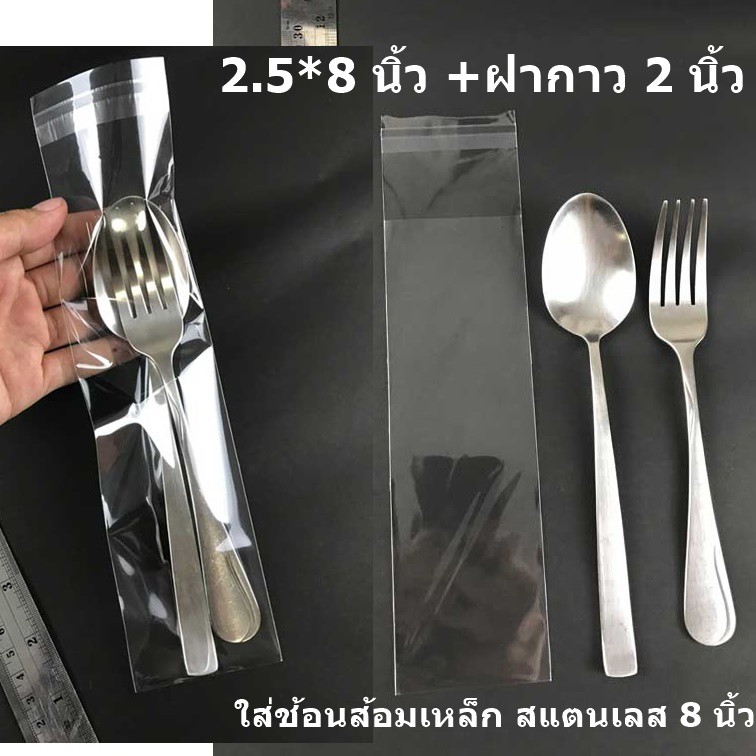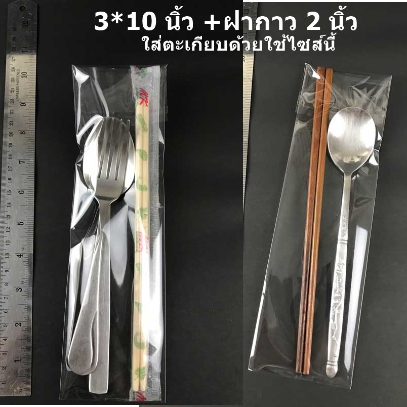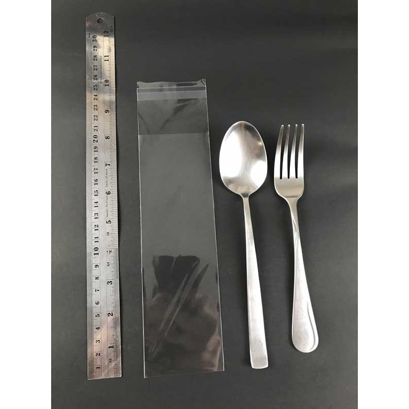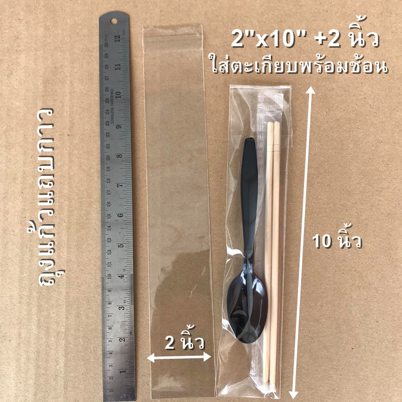 ถุงใส่ช้อนส้อม ถุงแก้วมีแถบกาว มีหลายขนาด พร้อมส่ง