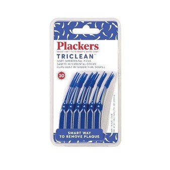 Plackers Triclean Plaque Remover ไม้ทำความสะอาดร่องฟัน แบบนุ่ม พร้อมกล่องพกพา 30pcs