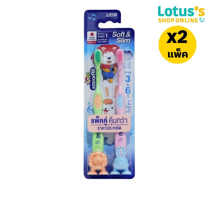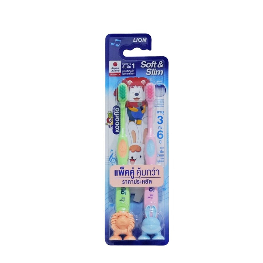 [ทั้งหมด 2 แพ็ค] โคโดโม แปรงสีฟันเด็ก ซอฟท์ แอนด์ สลิม สำหรับอายุ 3-6 ปี (แพ็ค 2 ด้าม) KODOMO TOOTHBRUSH SOFT AND SLIM