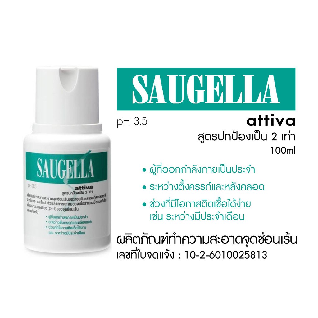 ส่งเร็ว!! Saugella attiva pH3.5 100ml. ซอลเจลล่า แอ็ทติว่า สูตรสีเขียว ( 1 ขวด )( 2 ขวด ) 🔸Exp.10/2026🔸 (ถูกที่สุด)